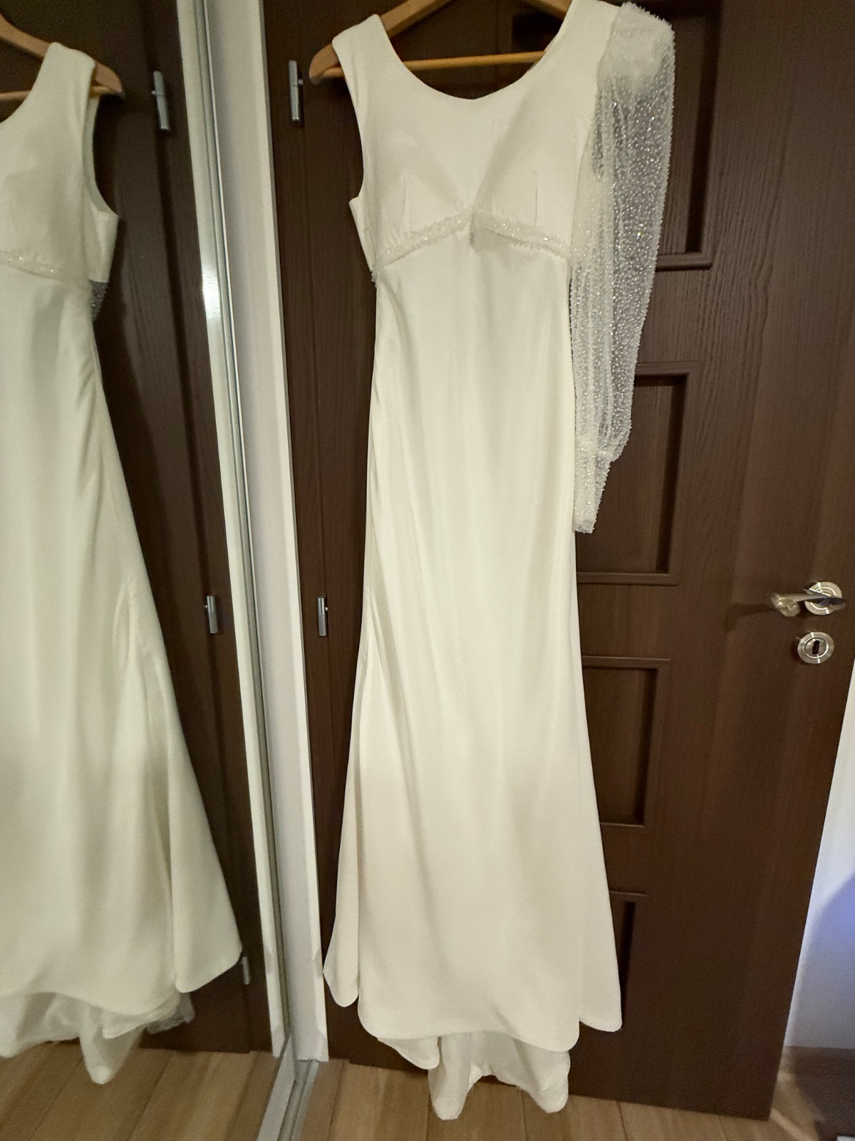 Predam 2x pouzite spolocenske/ prip. svadobne saty farby ivory, na vysku postavy 167 cm, velkost S