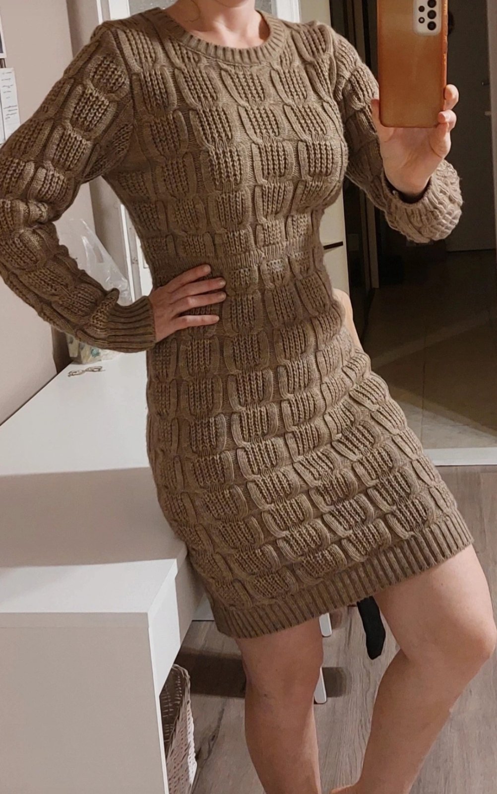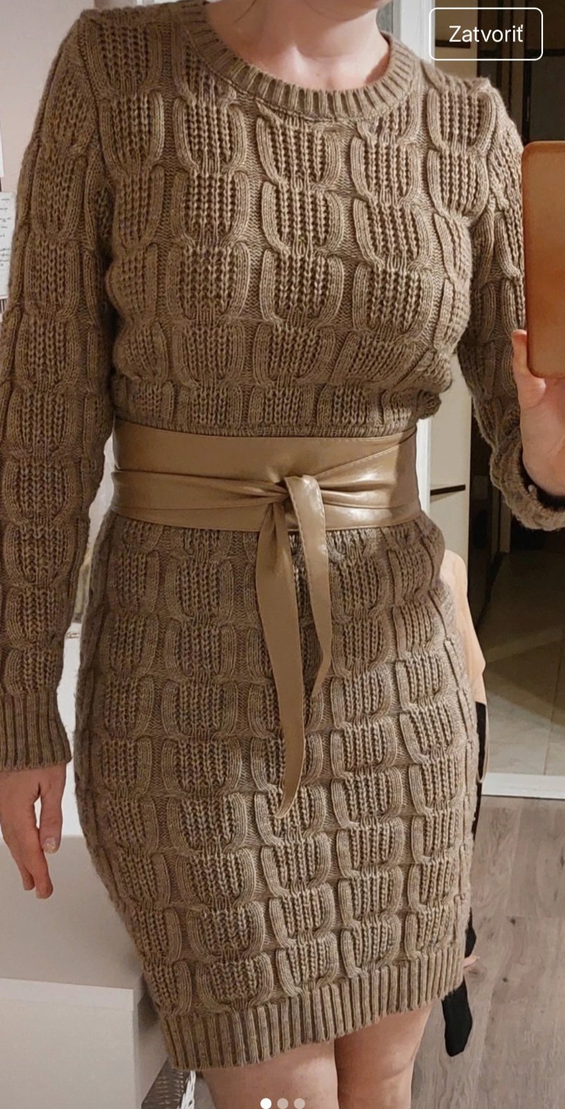Super kúsok. Teplá khaki pletenina. Opasok nie je súčasťou. M, L veľkosť. Top stav, ako nové. Veľmi krásne sedia a sú príjemné na nosenie.