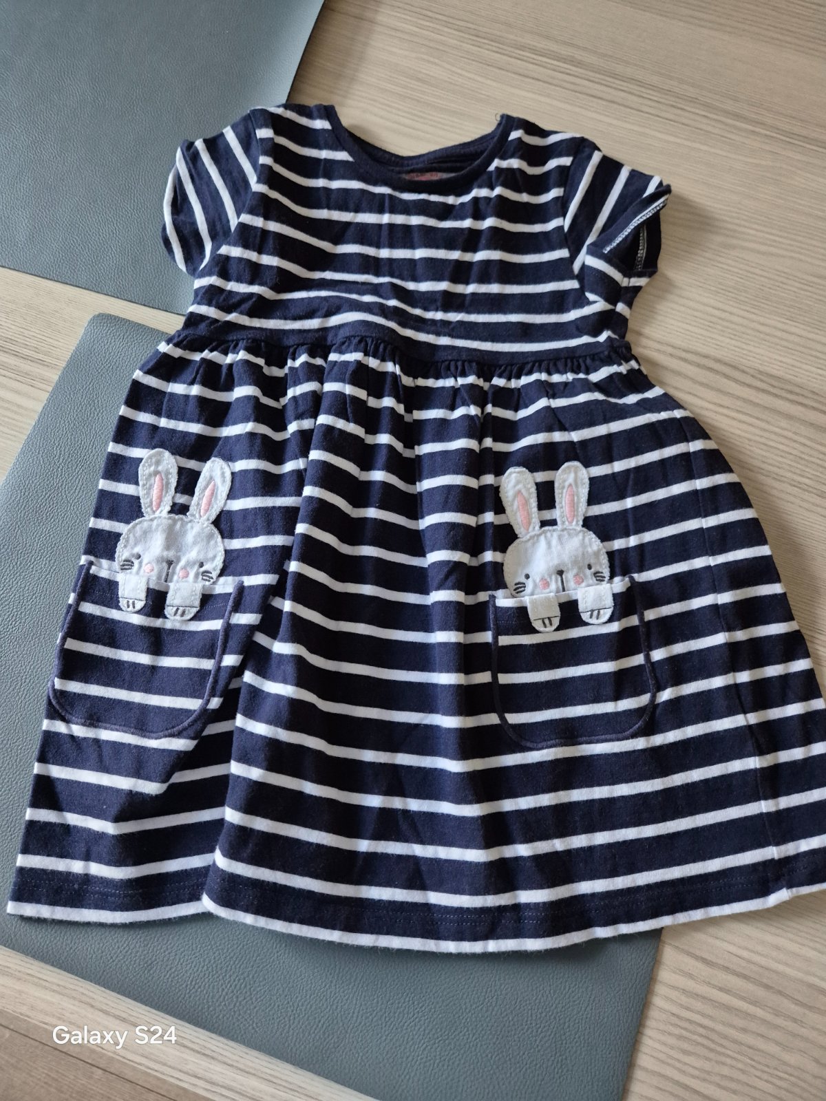 Tmavomodré letné šaty, veľkosť sedí na 98/104 (písaná veľkosť 104). Rozmery sú na fotkách. Jedenkrát oblečené, nepoškodené, top stav. Máme viacero detských vecí, môžete si zostaviť vlastný balíček....