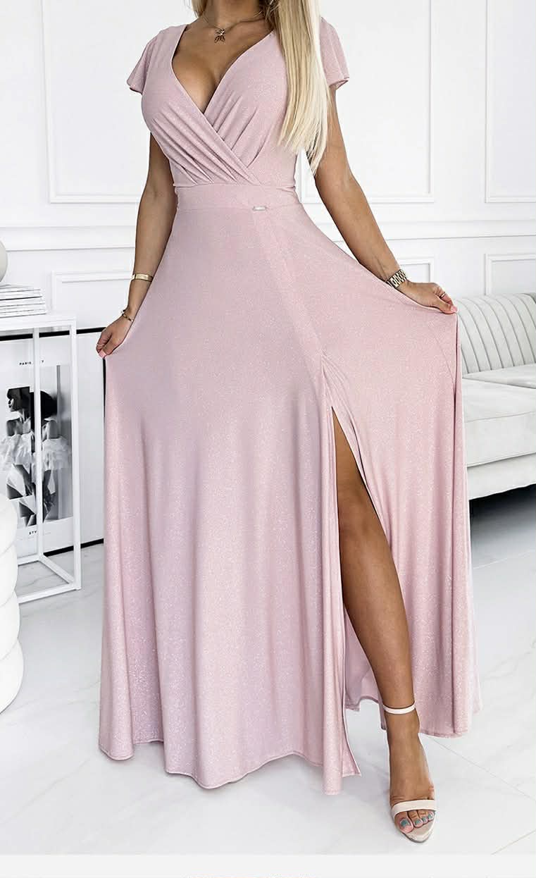 Náš sequin Maxi s hlbokým výstrihom do V, očarujúca zmes pôvabu a štýlu. S odvážnym hlbokým véčkovým výstrihom, ktorý vyžaruje sebavedomie, sú tieto šaty navrhnuté tak, aby ste zažiarili na každej ...