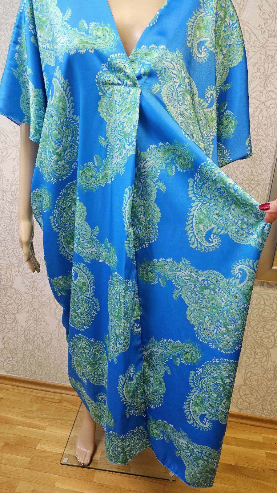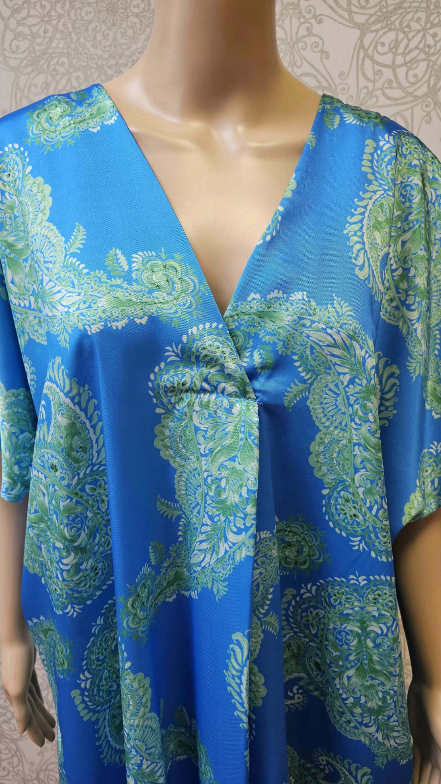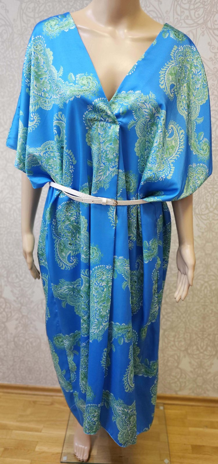 Nové. Dĺžka predná 122 cm, dĺžka zadná 128cm, šírka v hrudníku cca 77x2 cm. Opasok nie je súčasťou.