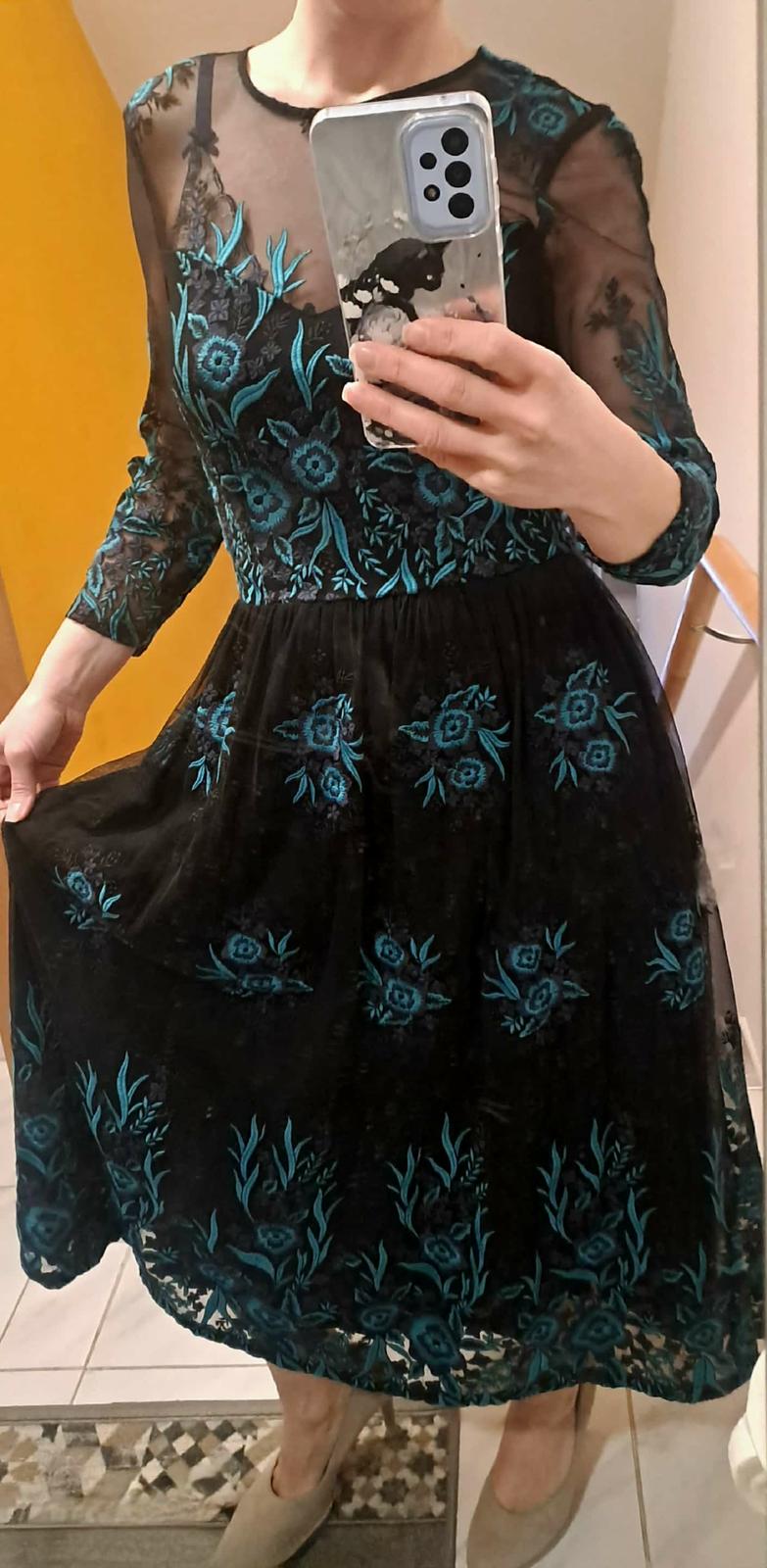 Prekrásne do detailov prepracované šaty vhodné na spoločenské príležitosti 🩵🖤 Na tele je bavlnená spodnička, zvŕšok šiat je vyšívaný tyl.