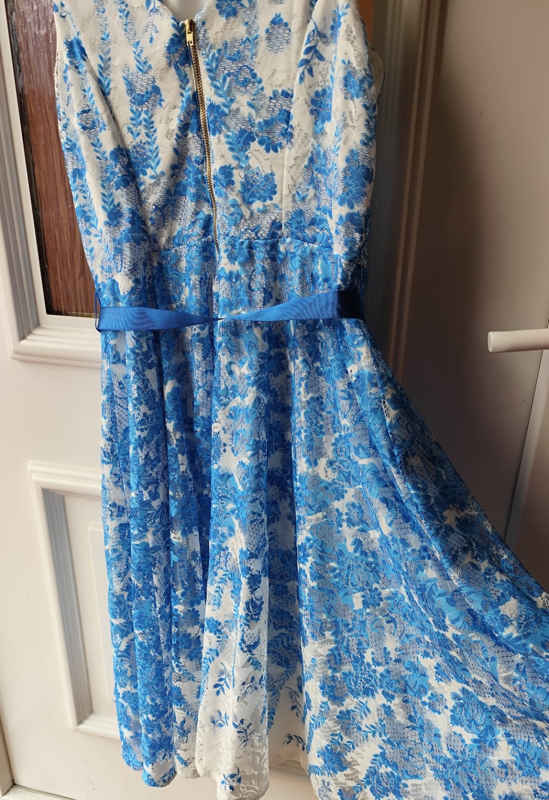 Dlzka siat je tesne nad kolena, 98 cm. Zapinanie je na gombik zo zadnej strany. Material 95% polyester 5% elastan. Nemaju poskodenie, malo nosene. Osobne prevzatie v Presove alebo postou plus posto...