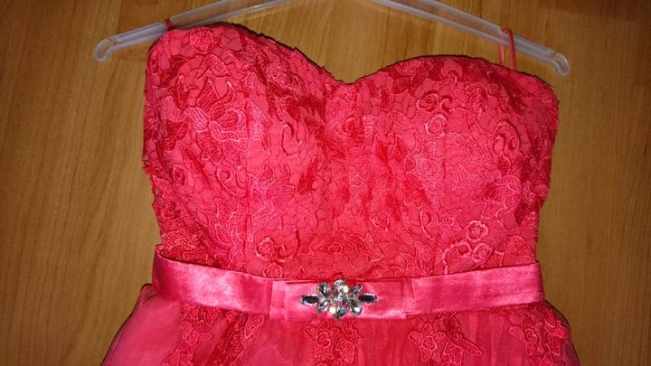spolocenske dámske šaty veľkosť M-L, majú vzadu gumicku. Sú ružové tylove, A-ckovy strih. Mala som ich raz na svadbe.