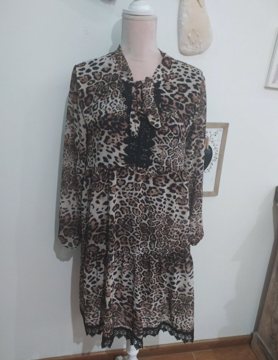 Šaty sú v top stave,sifonove,podsite.Pod krkom viazanie na maslu,zdobené čiernou krajkou.volny strih,veľ Uni vhodné pre veľ S-L