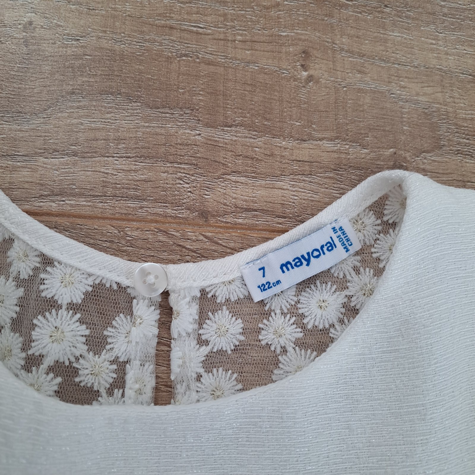 Predám prekrásne šaty zn.Mayoral,v.122.Sú bielo smotanovej farby.Tip top stav.