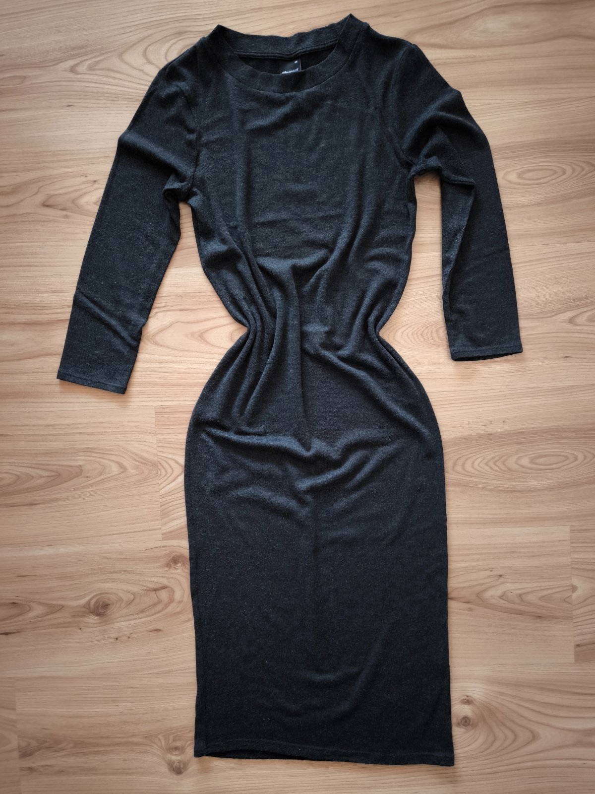 Tmavosede melirovane midi saty Gina Tricot. Velmi prijemny, makkucky material. 3/4 rukavy. Top stav.