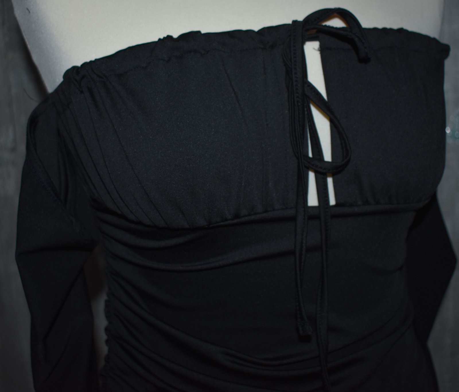 Dlhý rukáv.Vpredu stiahnute cez šnurku cez prsia