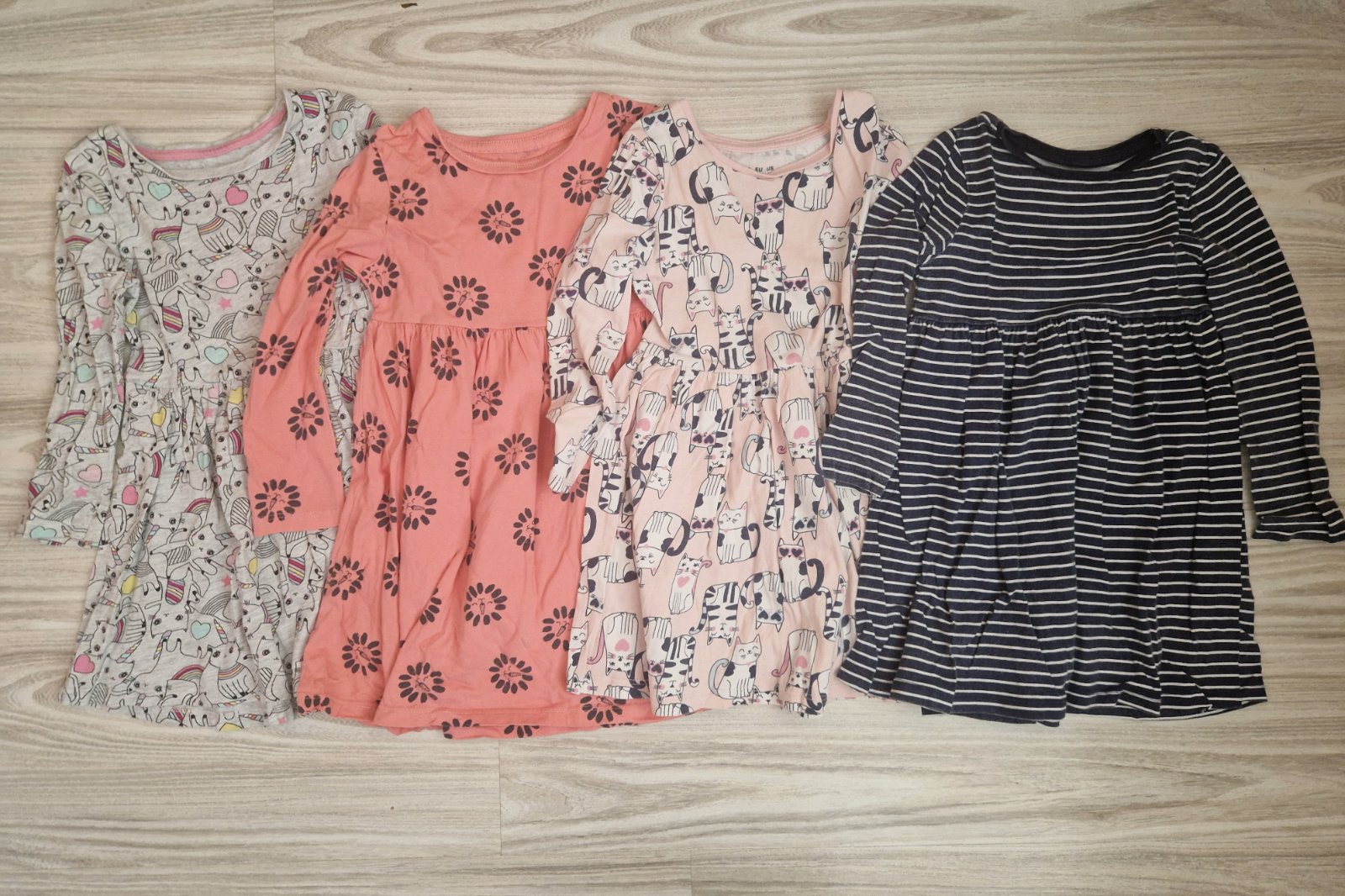 Šaty s dlhým rukávom veľkosť 98/104 - značky rôzne. Bežne známky opotrebenia, zmolky z prania, inak pekný stav