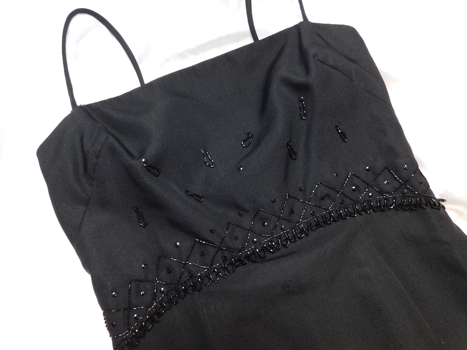 Pekne vintage šaty,čiernej farby,s podsivkou,vzadu zips,zdobene drobnymi ligotavymi koralakmi. noseny stav. j47