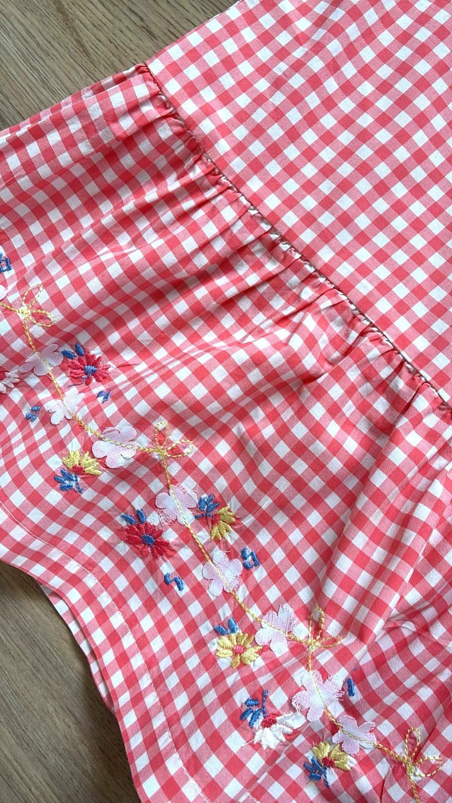 Predám letné šaty v červeno-bielom károvanom prevedení, majú áčkový strih veĺmi pohodlný na nosenie dolu ukončený štýlovým volánom s jemnou kvetinovou výšivkou, a aplikáciou kvietkov, sú bez rukávov, zapínanie vzadu na 4 gombíky, na ramene nefunkčné mašle, nie sú podfutrované, ideálne na horúce letné dni, 100% bavlna-ľahké a priedušné plátno, d=78cm, š cez prsia=37cm, bez známok nosenia, top stav.