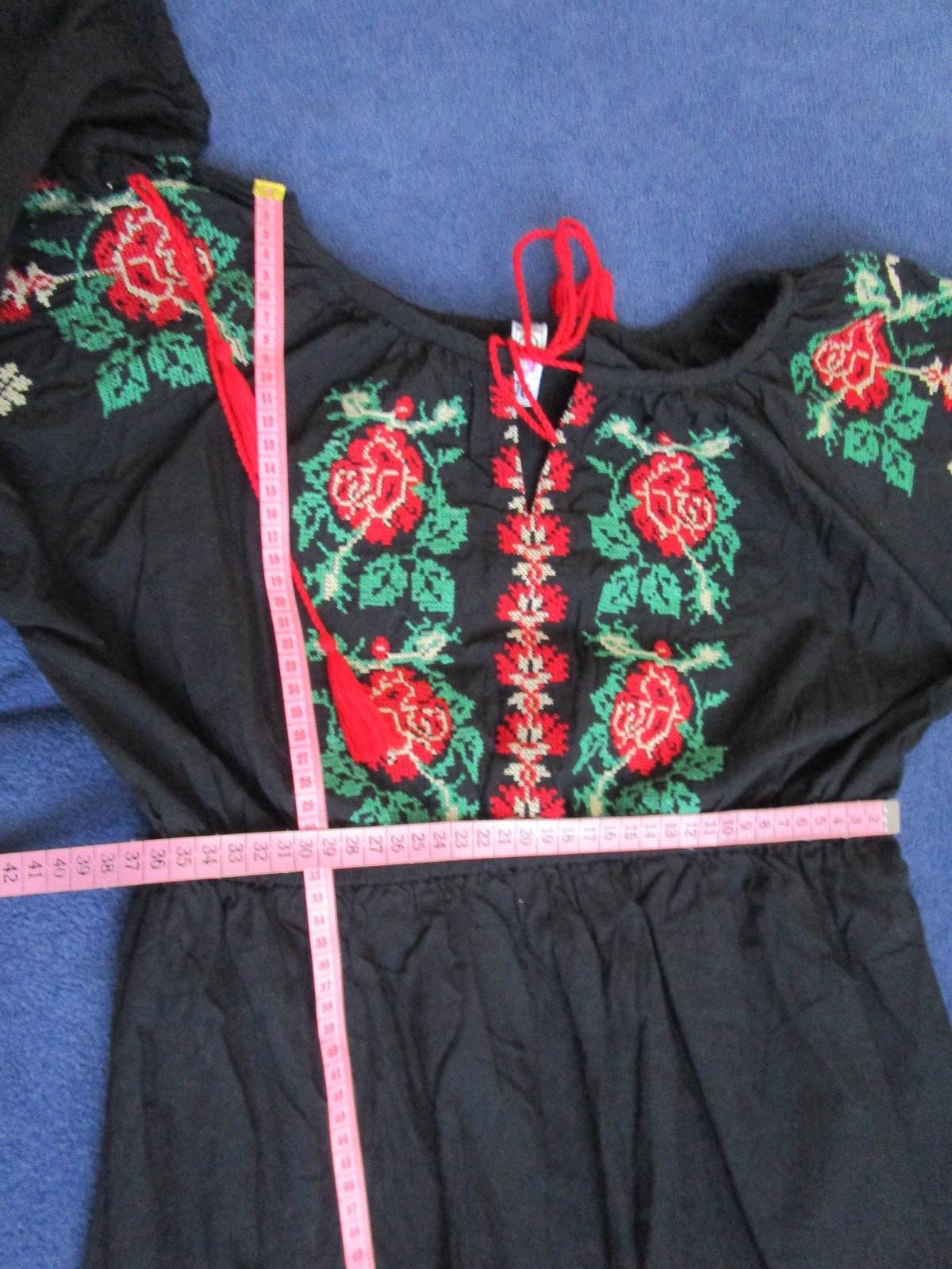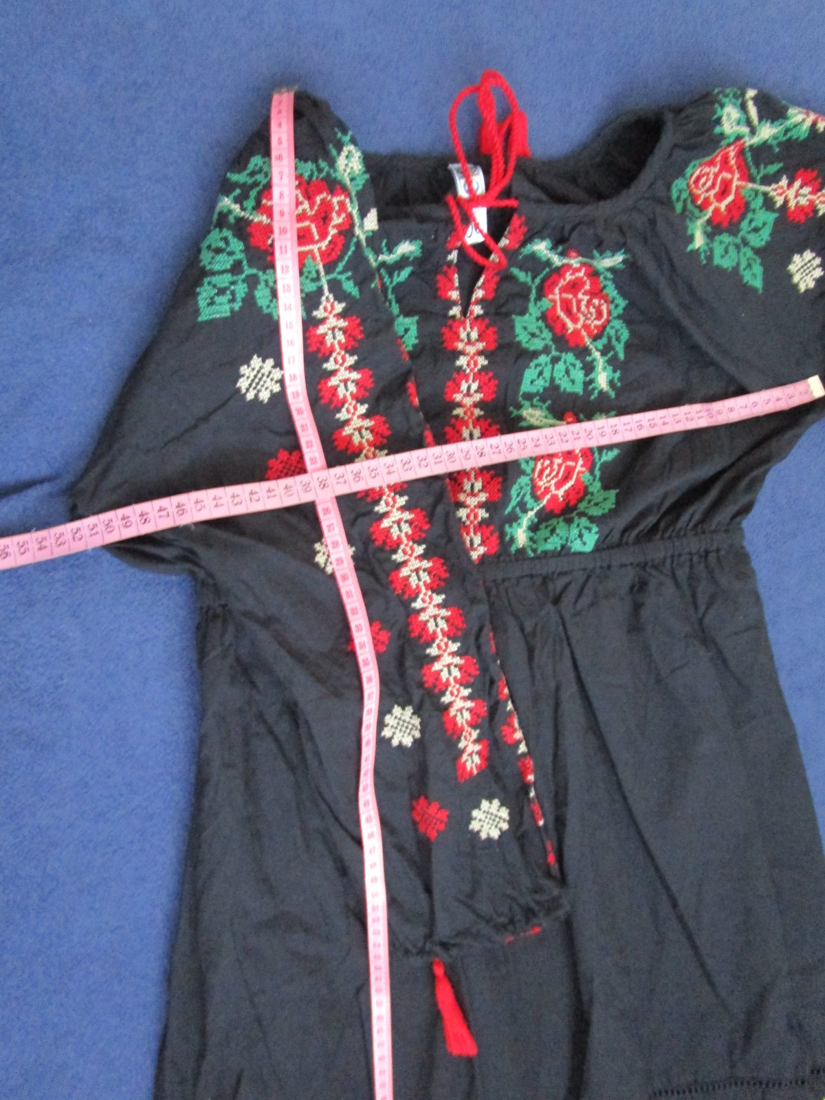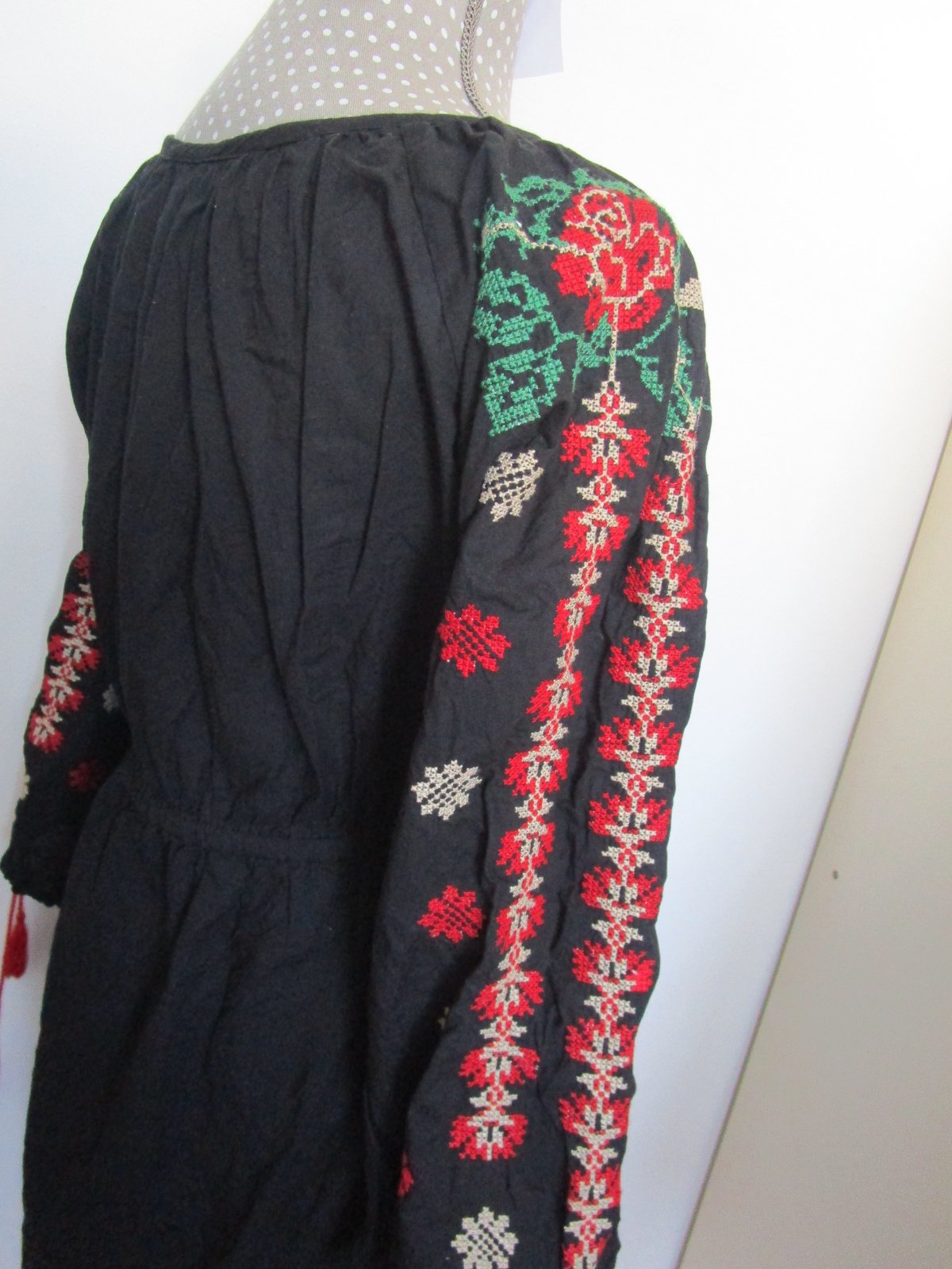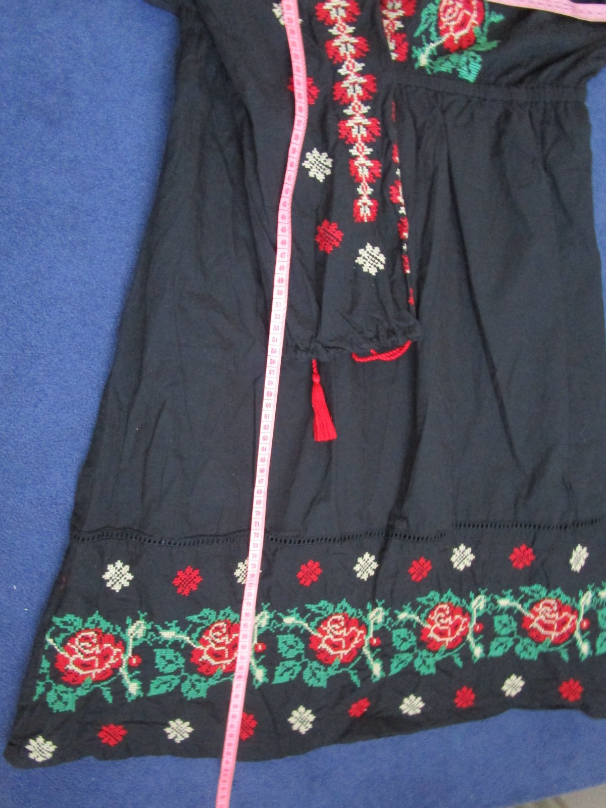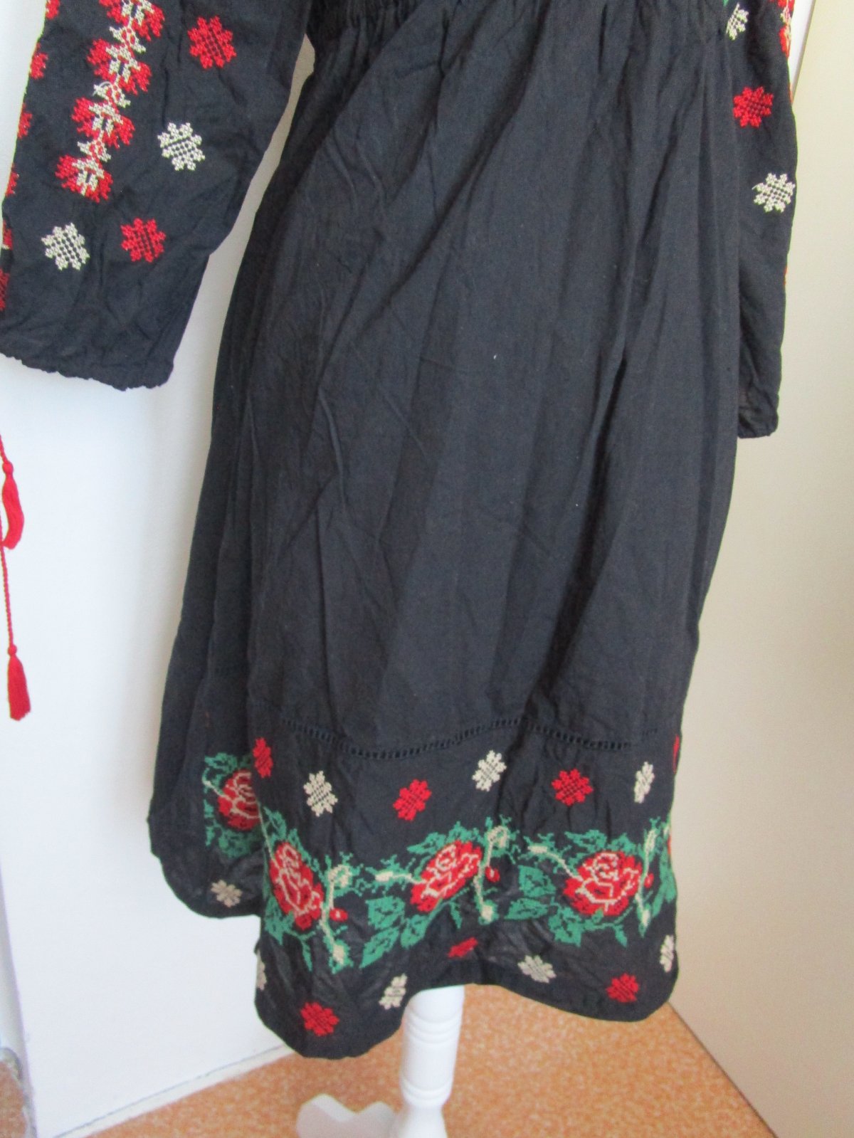 Šaty sú voľného strihu, ba nazbierané okolo výstrihu, teda nie sú vypasované. Sú vyšívané s náročnou krížikovou technikou a vhodné aj do súboru pre milovníkov folklóru. V pase je guma.