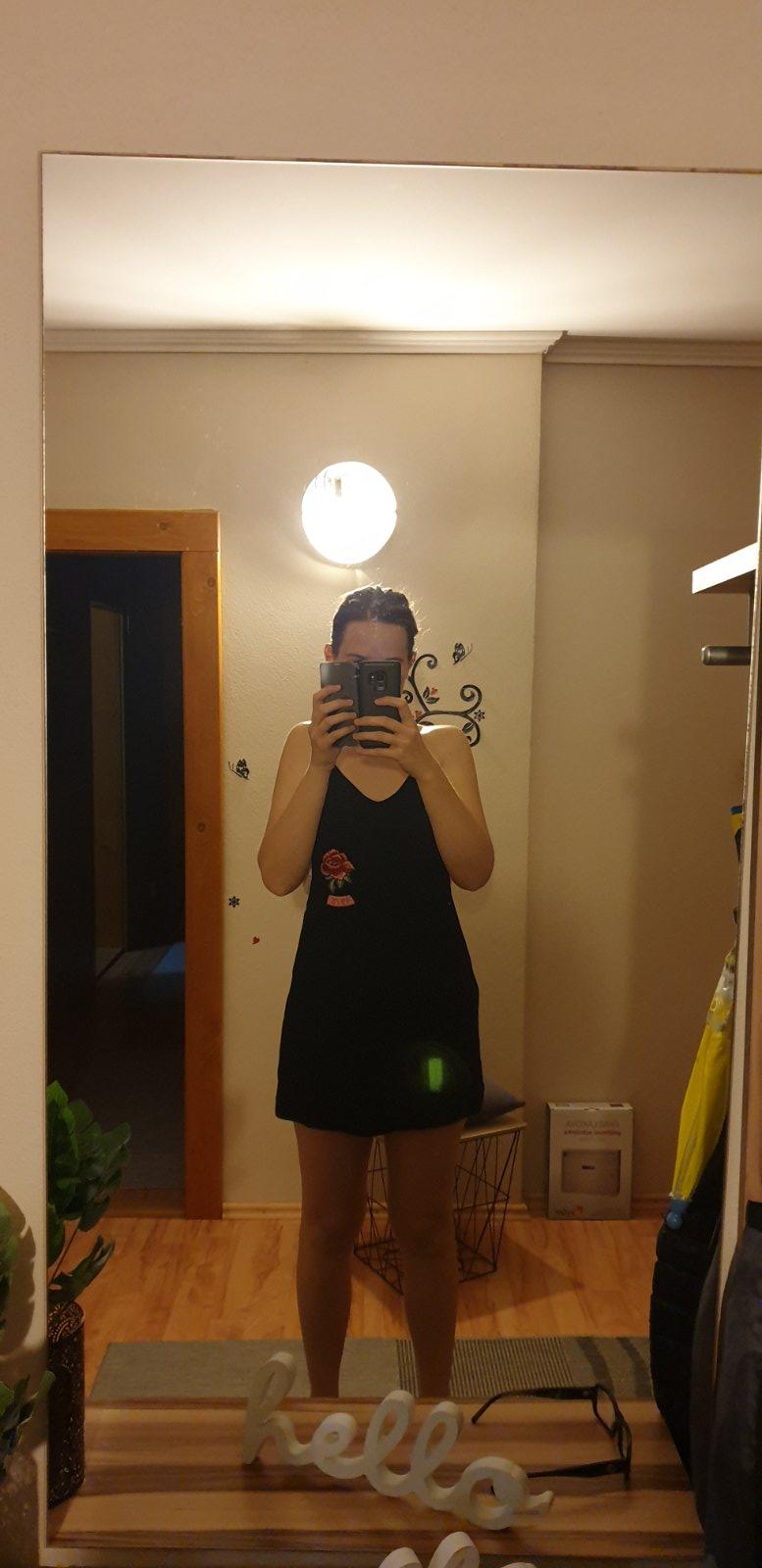 Asymetrické letné šaty, vpredu kratšie a vzadu sú dlhšie. Písaná veľkosť L, no sú menšie, skôr M.