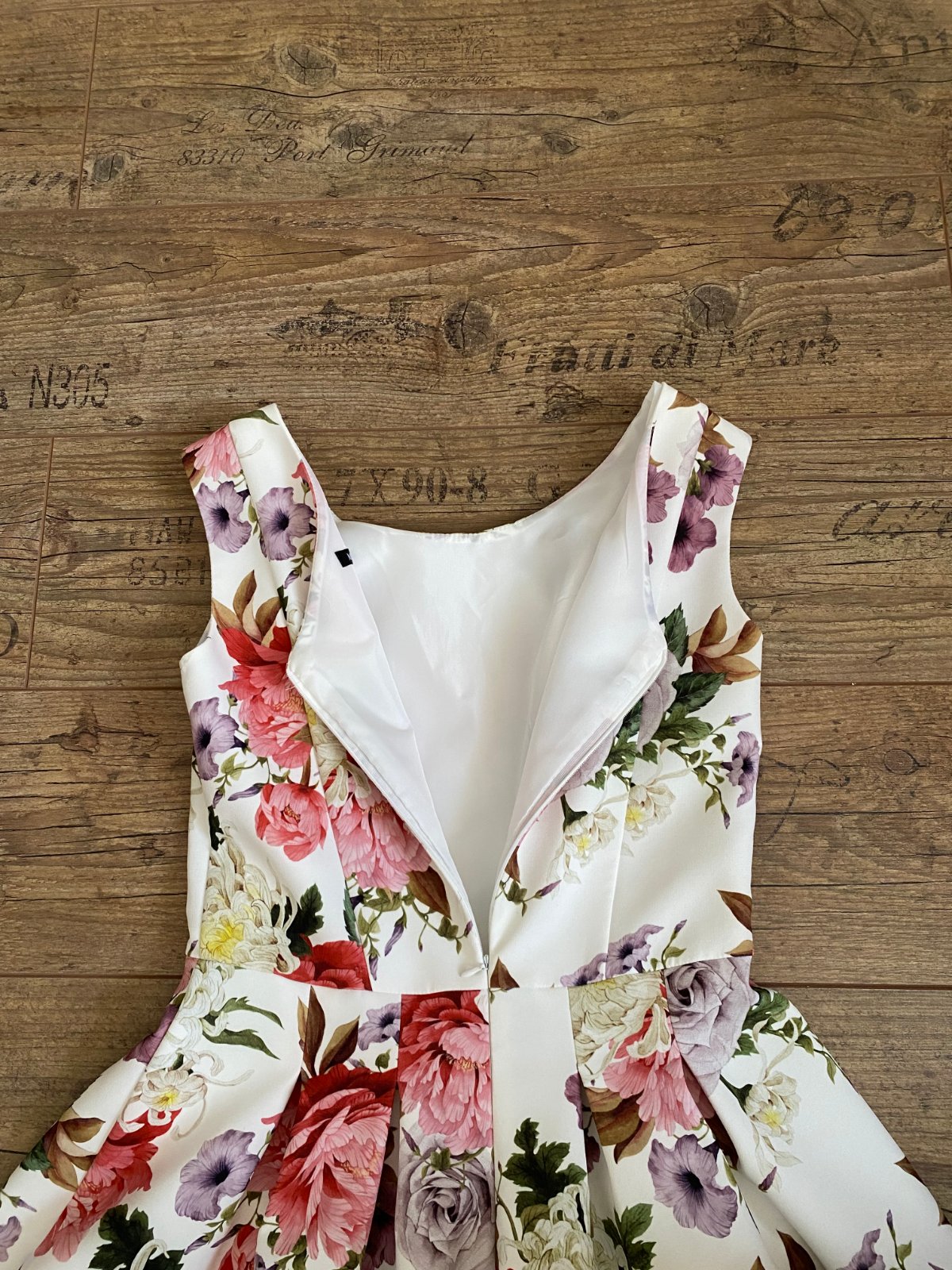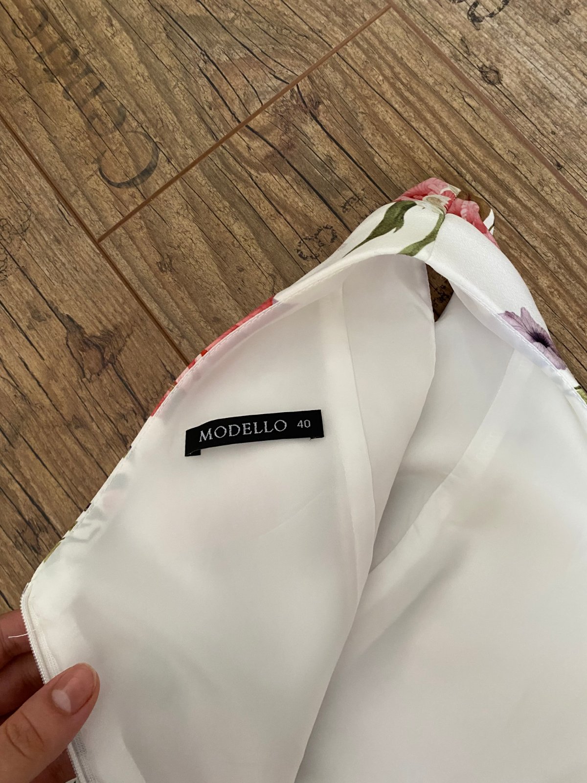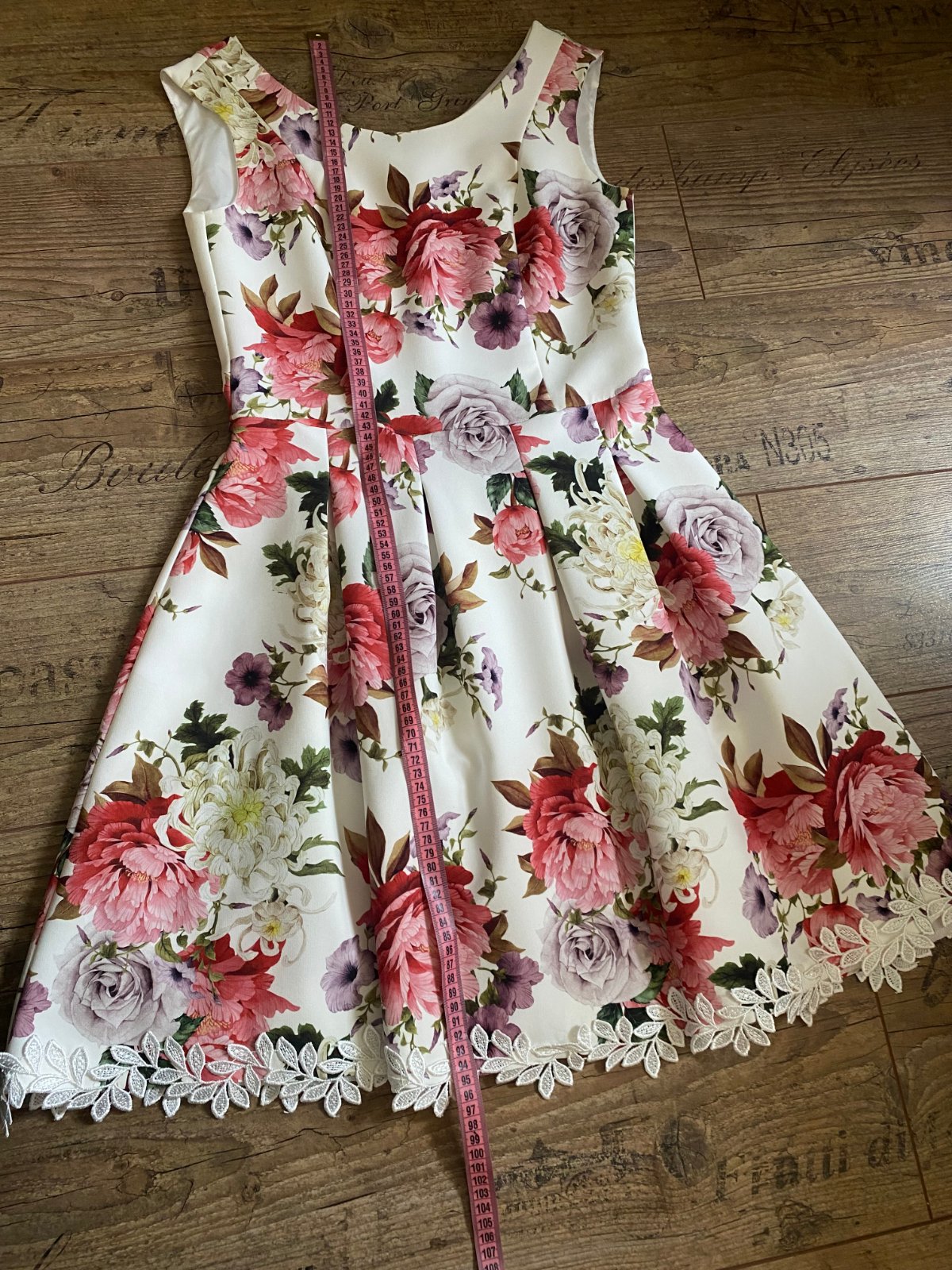 Posúvam tieto kvalitné šaty, vhodné aj ako popolnočné šaty pre nevestu. Veľkosť uvedená na štítku je 40, sedia tak na M. Rozmery máte na fotkách. Materiál je pevný, hrubý a taký stojatý, naozaj kvalitne ušité. Zapínanie vzadu na zips. Materiál sa jemne naťahuje na prsiach (pozri fotku, tak od 40 do 47 cm).