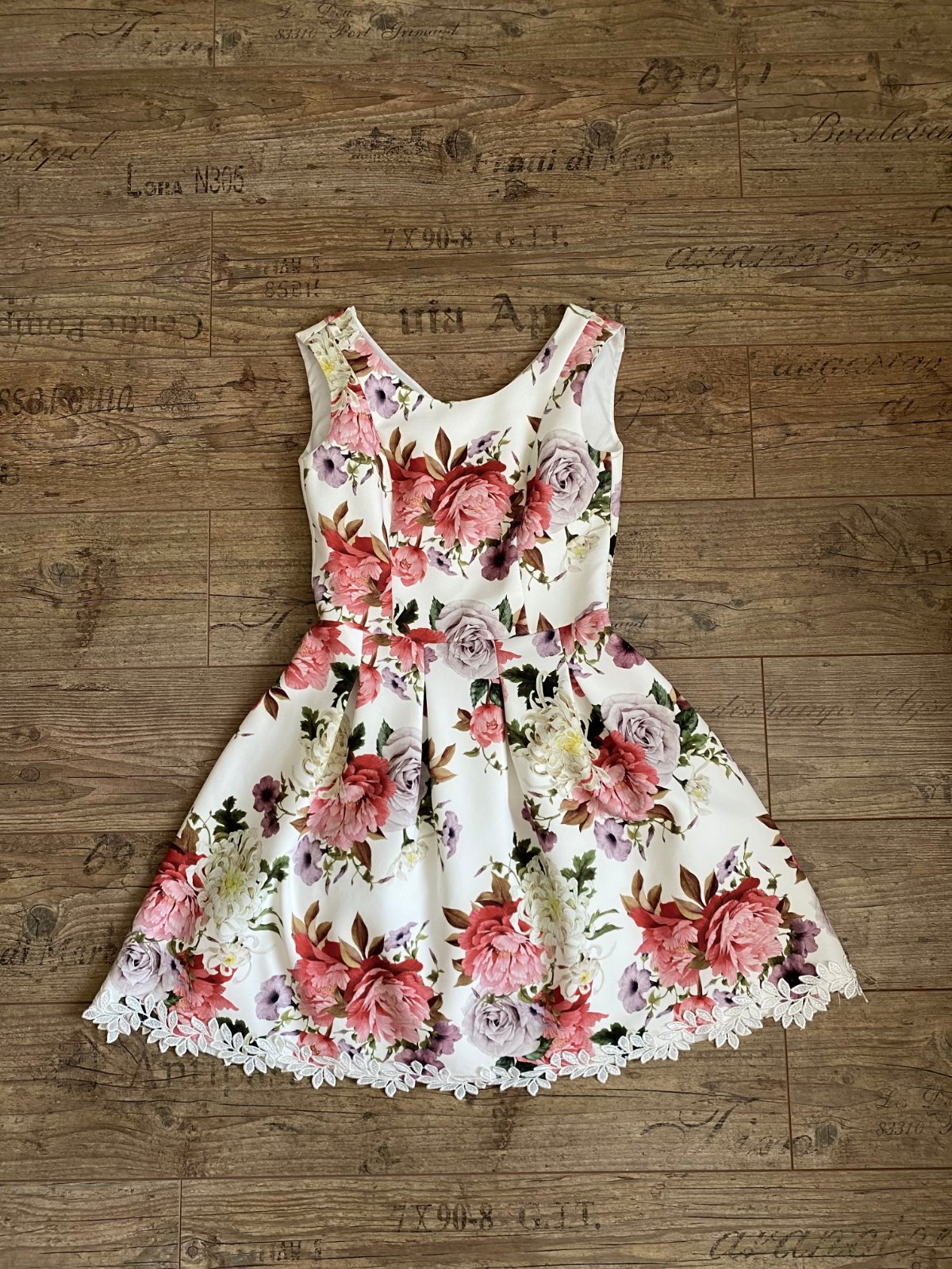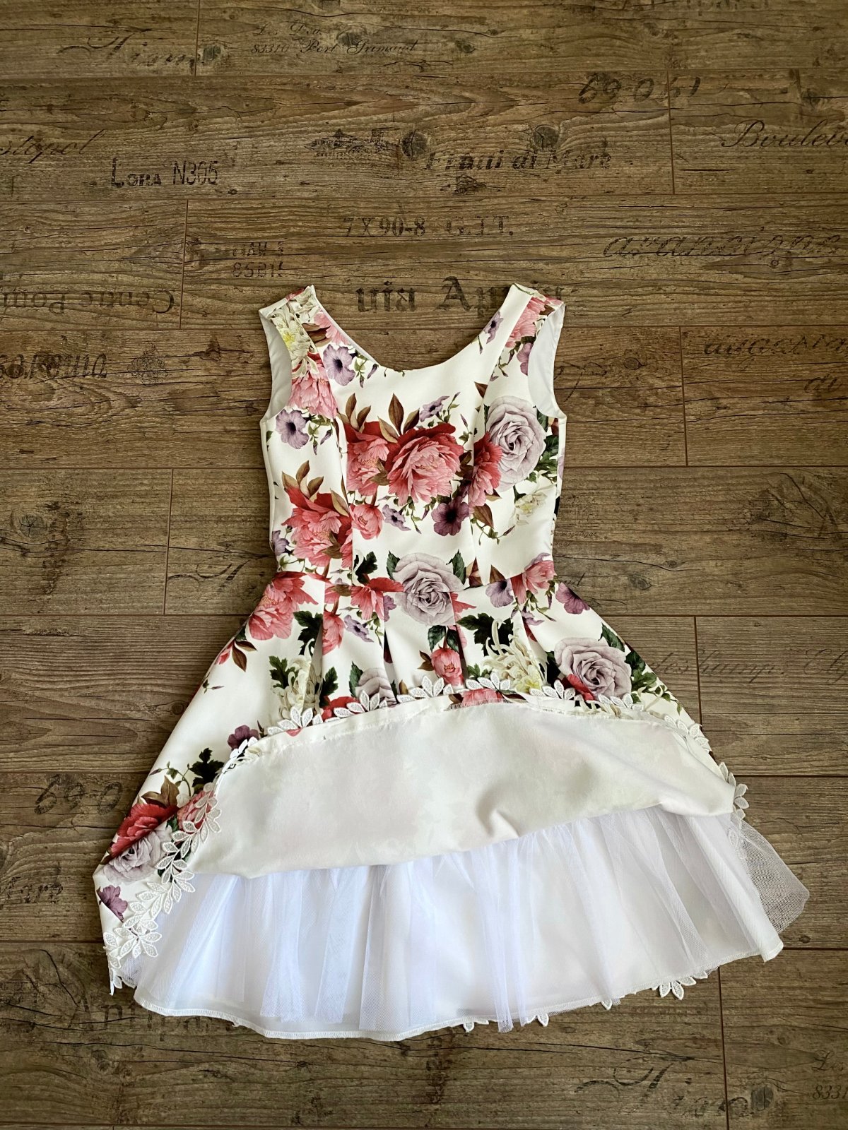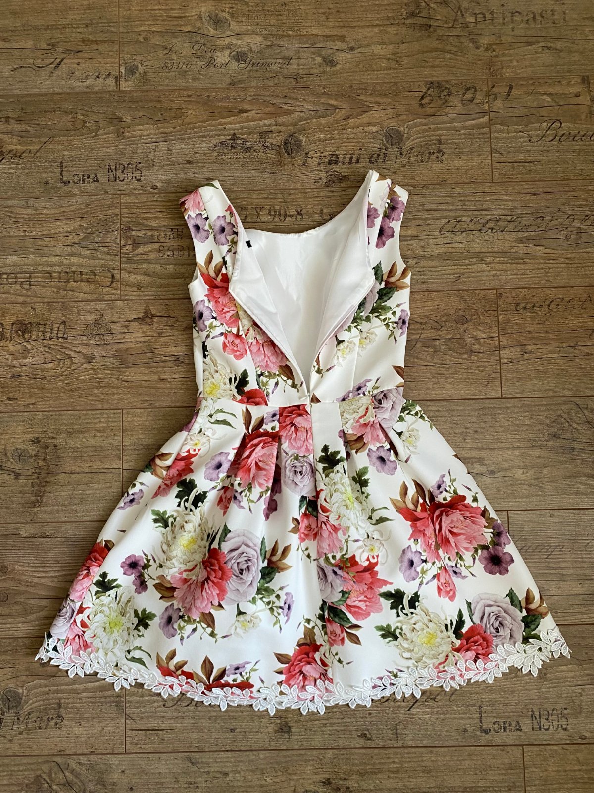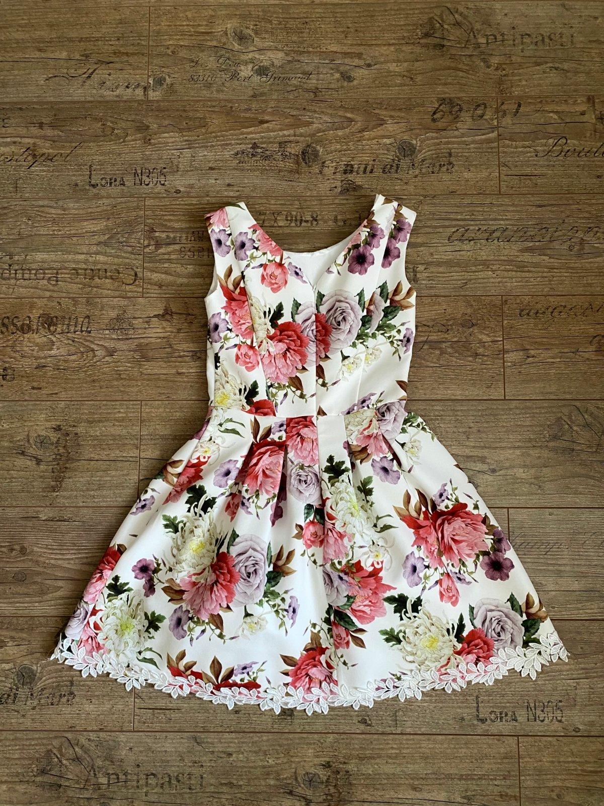 Posúvam tieto kvalitné šaty, vhodné aj ako popolnočné šaty pre nevestu. Veľkosť uvedená na štítku je 40, sedia tak na M. Rozmery máte na fotkách. Materiál je pevný, hrubý a taký stojatý, naozaj kvalitne ušité. Zapínanie vzadu na zips. Materiál sa jemne naťahuje na prsiach (pozri fotku, tak od 40 do 47 cm).