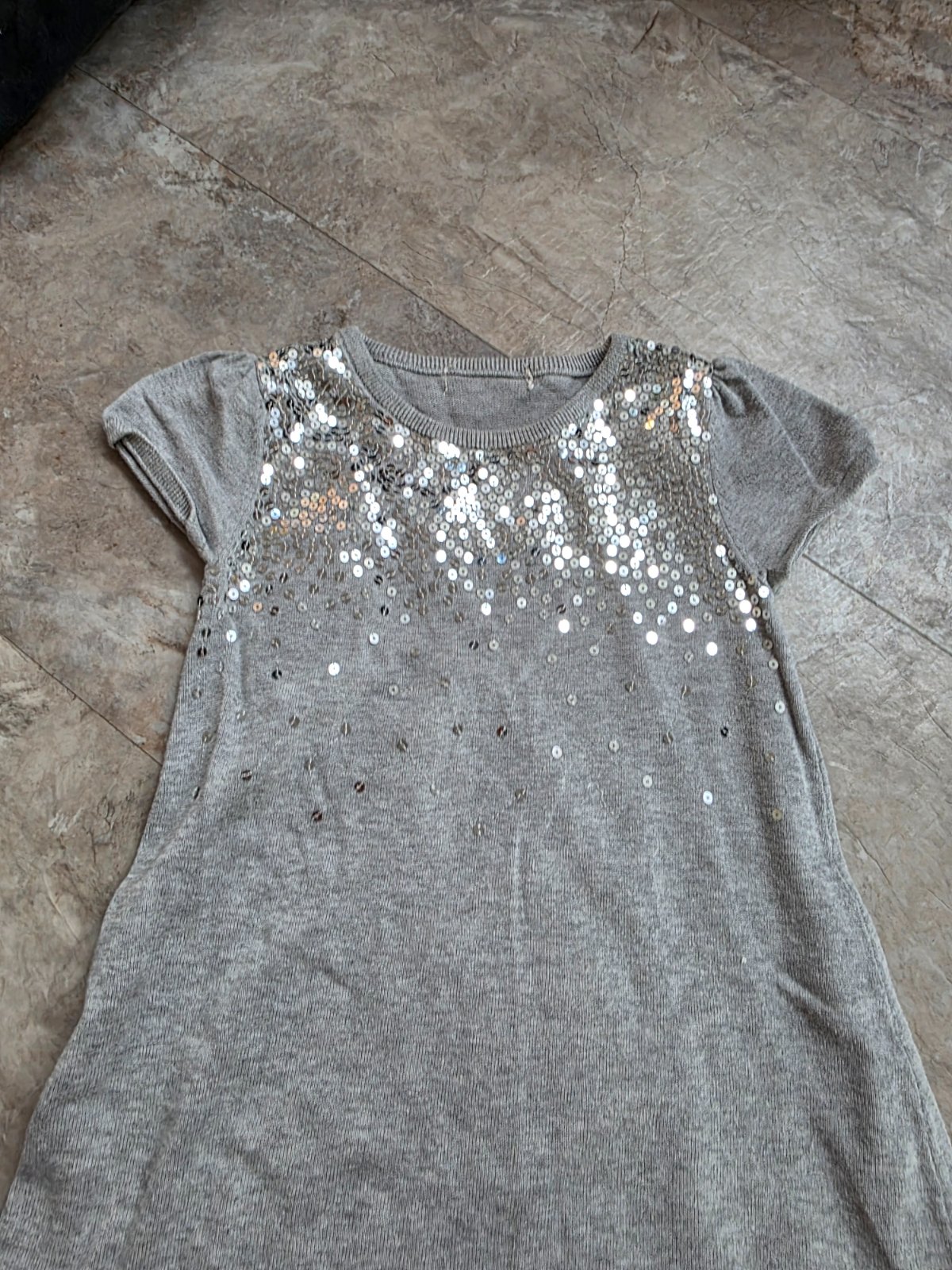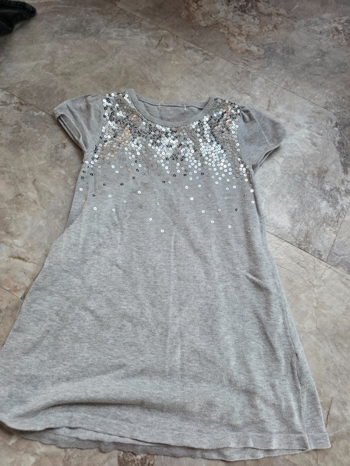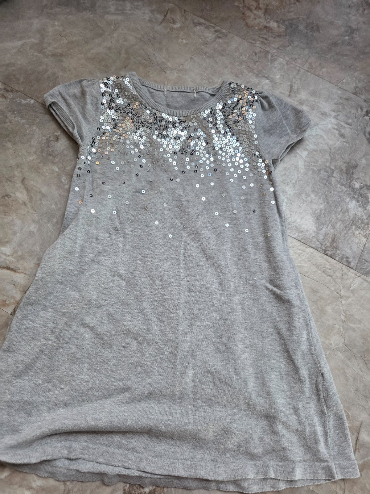 Sivé šaty s kamienkami 116/122