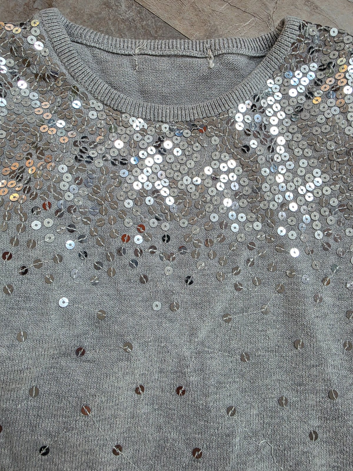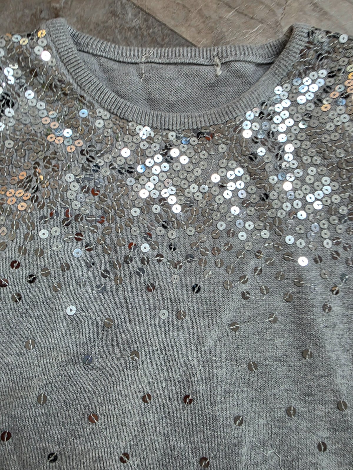 Teplunke, okolo dekoltu kamienky. Stitok s velkostou odstrihnuty.
