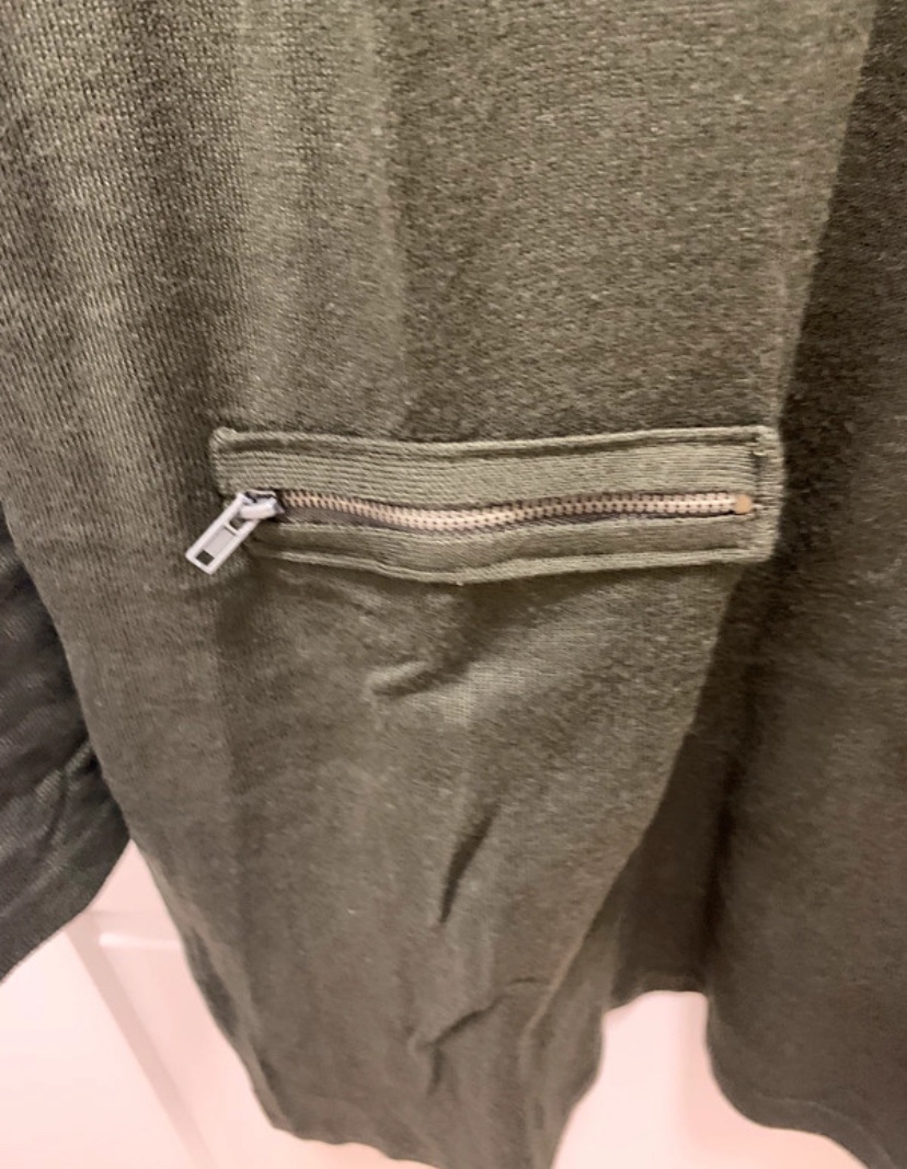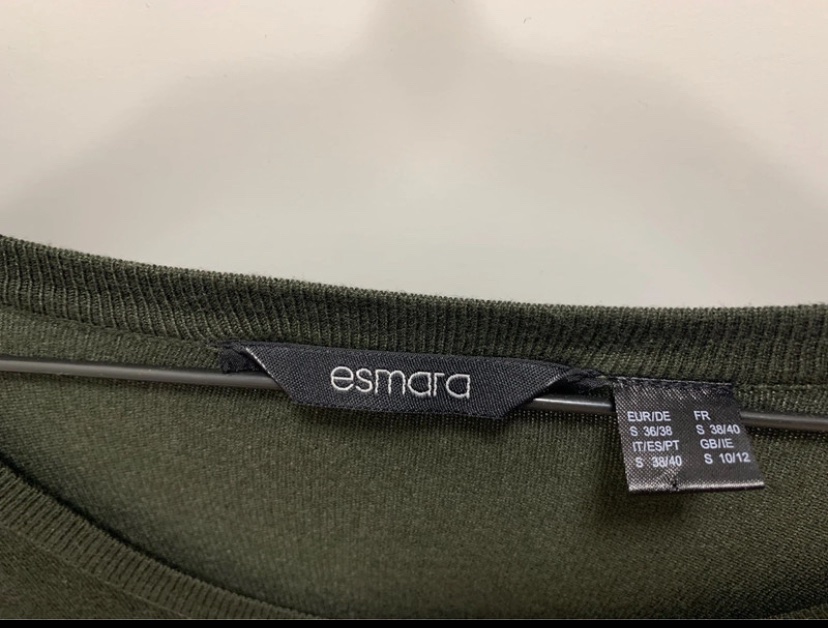 Šaty/ dlhý svetrík z úpletu v kaki odtieni s falošnými vreckami na zips značky Esmara.