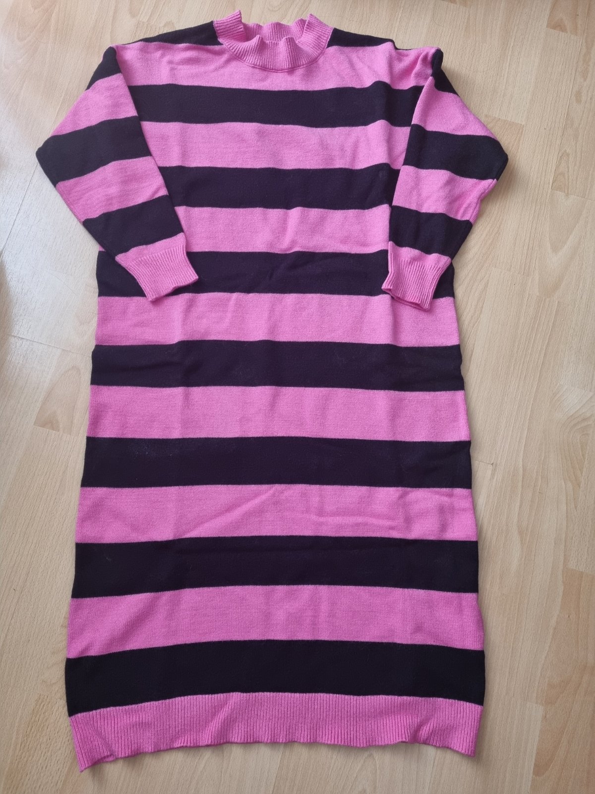 Upletove šaty ideálne na jar jeseň, ale aj zimu. Na konci rukávov zaujímavá aplikácia. Večkovy výstrih. Sedí na S, M, L. Mne sú väčšie. Som dosť nízka. Dajú sa kombinovať s opaskom. Ešte s visačkou...