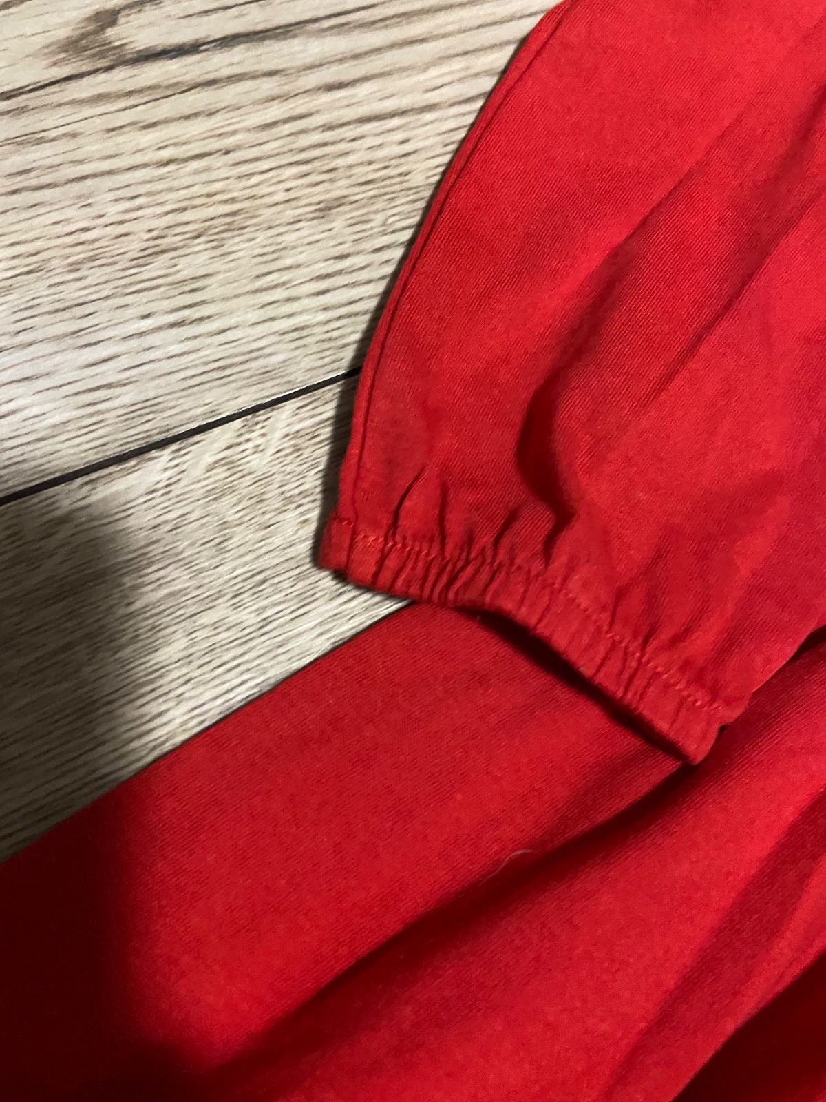 Farba krásna sýta červená. Na zadnej strane trošku vyparana nitka.