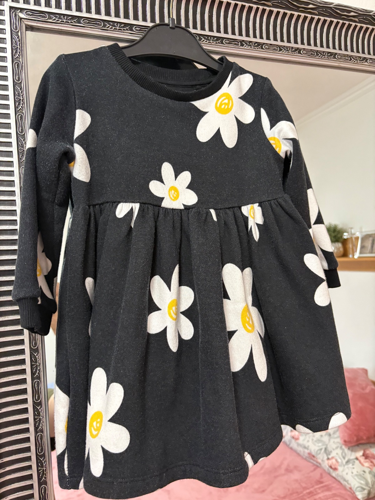 Saty bavlnené Čiernobiela krasne bez poskodeni s velkým tutu kvietkom mozne nosit aj ako tuniku