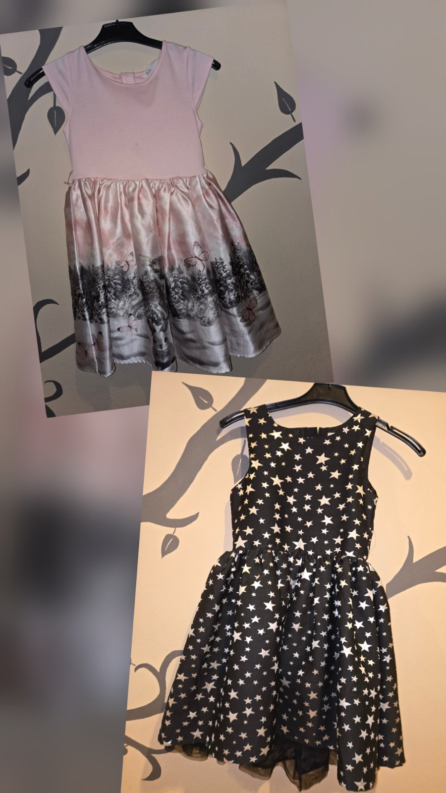 Ponúkam na predaj v dobrom stave 2ks slávnostné šaty H&M 134/140. Čierne su top stav ,vzadu majú zips, ružové malinka škvrna na vrchnej časti, taktiež ma zips. Obe spolu za 13e+ poštovné prevodom 3,50 doporučene