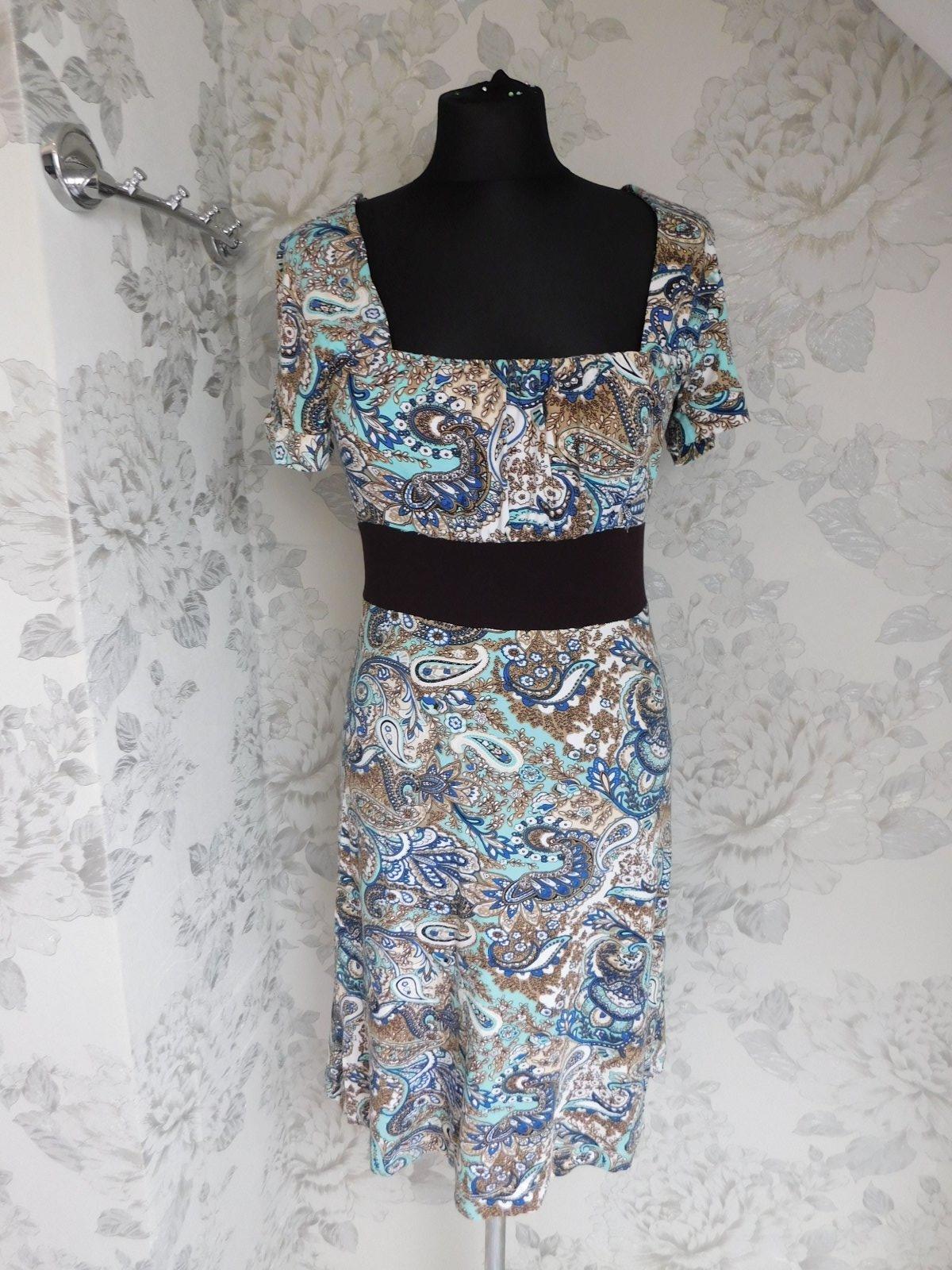 Pekne letne šaty,z jemneho upletu,s potlačou,95%viskoza,5%elastan.ako nove. le35