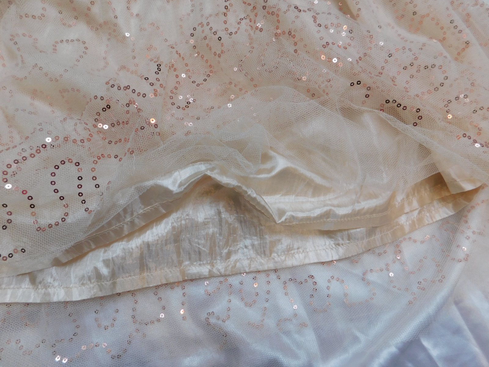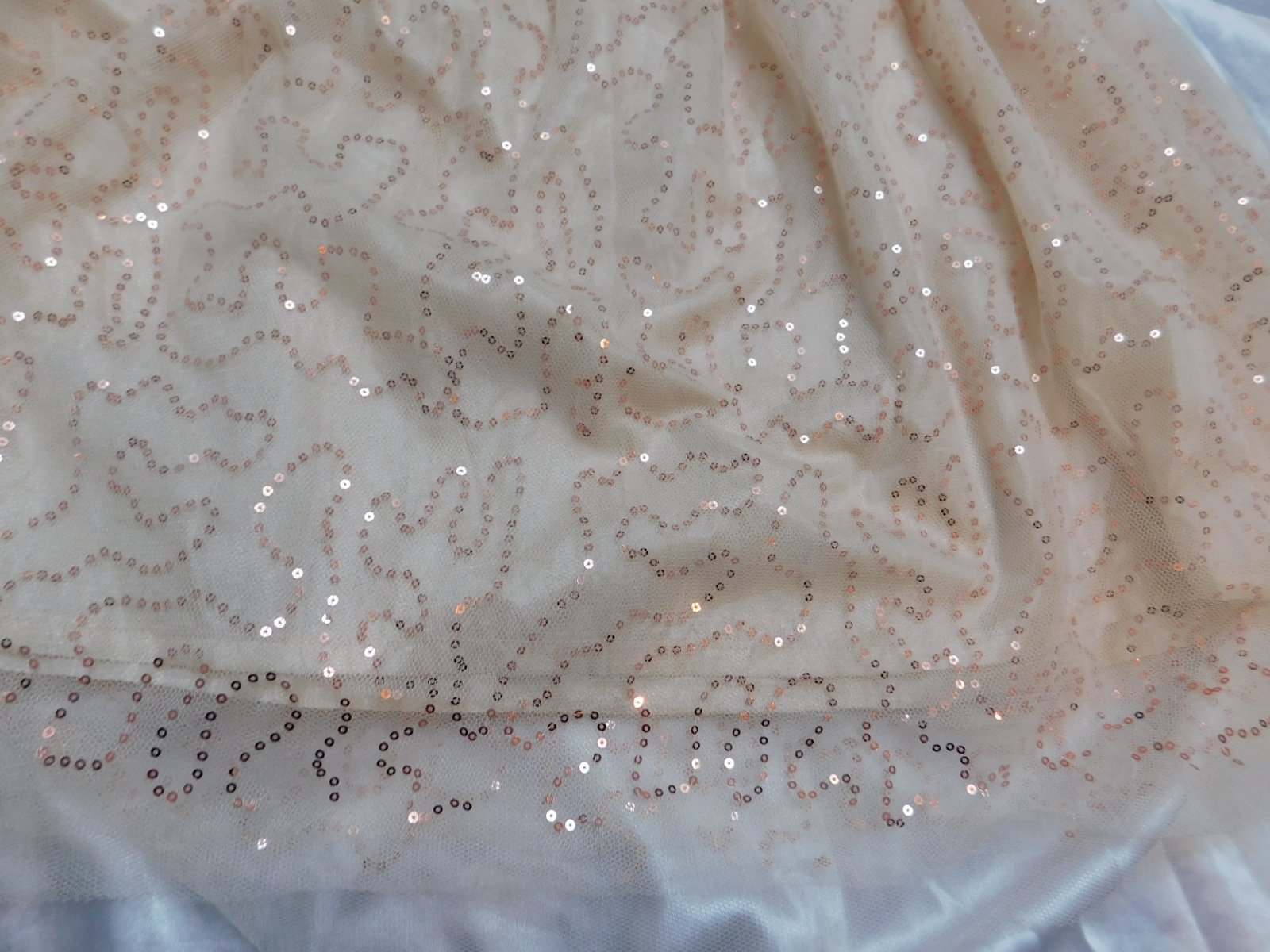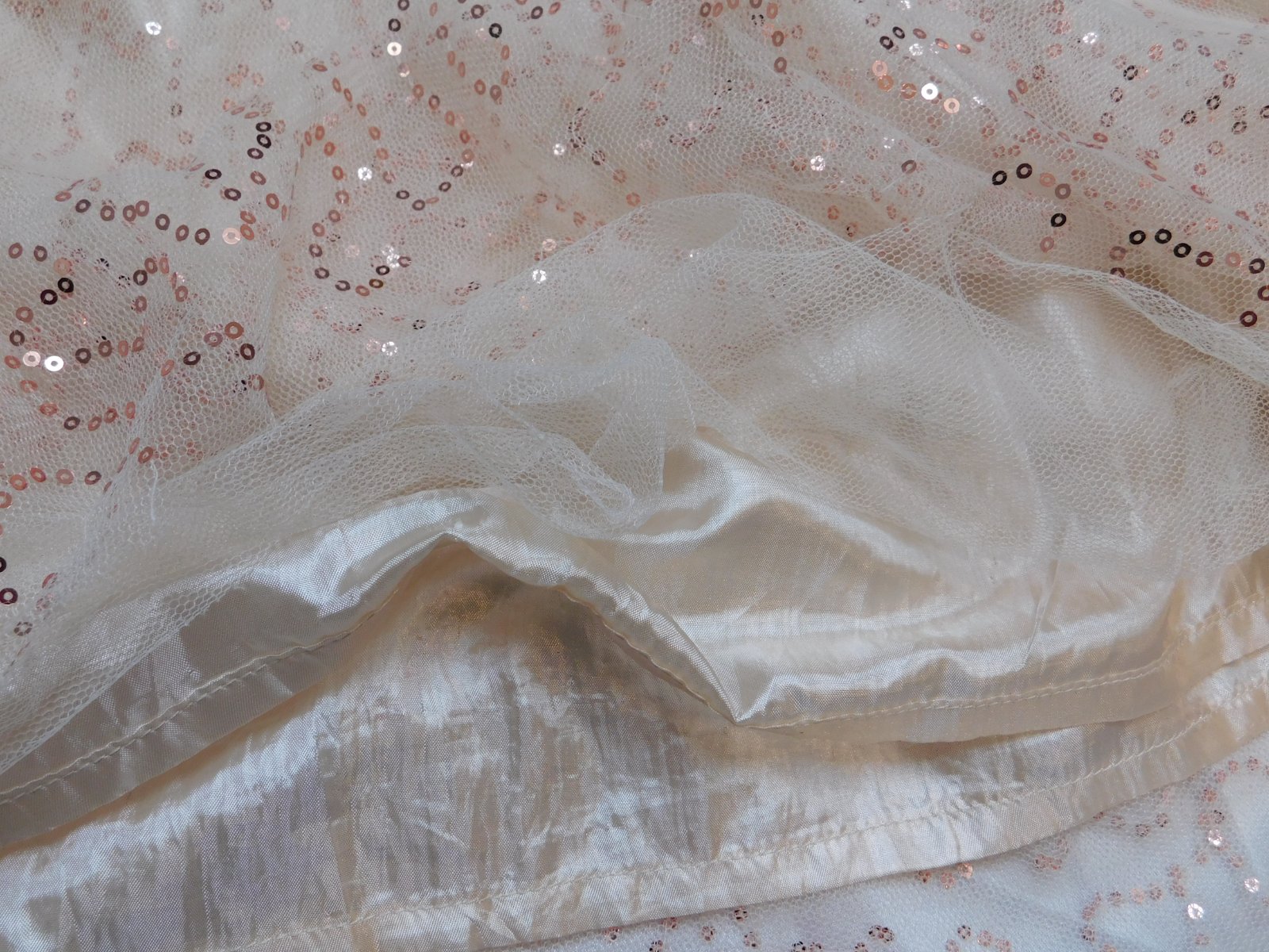 MIM Velmi pekne šaty na slavnost mahulovej farby,z tylu vyšitym flitrami,s podšivkou,na boku zips,hore na gumke,v pase gumka.super stav,ako nove. se37