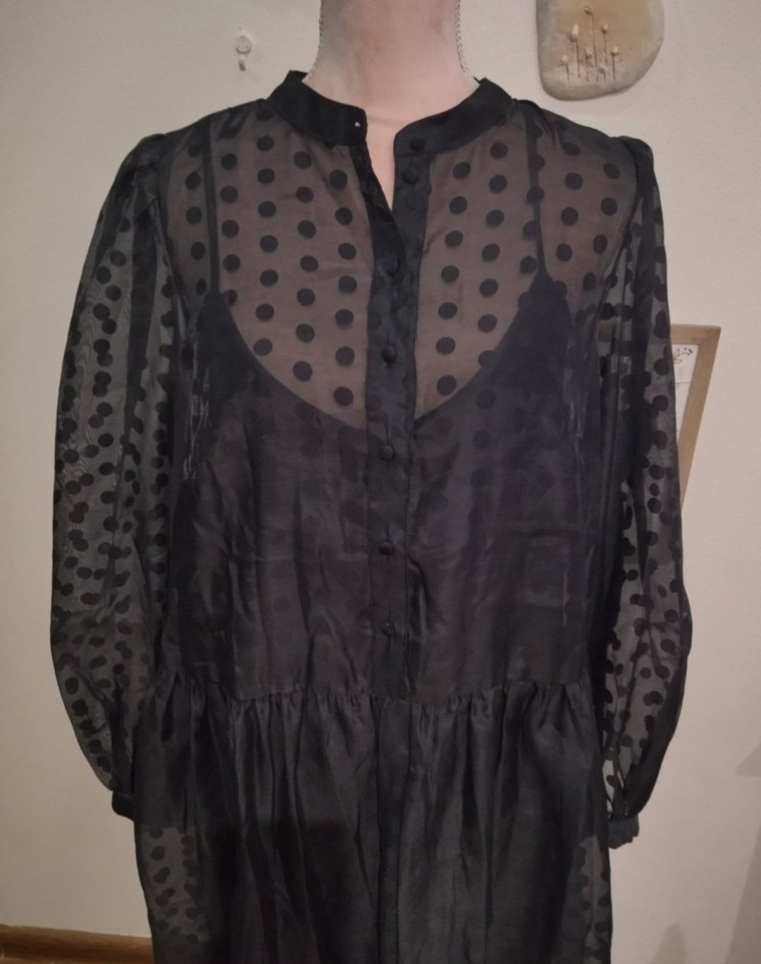 Krásne bodkované šaty,vrch na zapínanie,voľný strih, dvojvrstvove