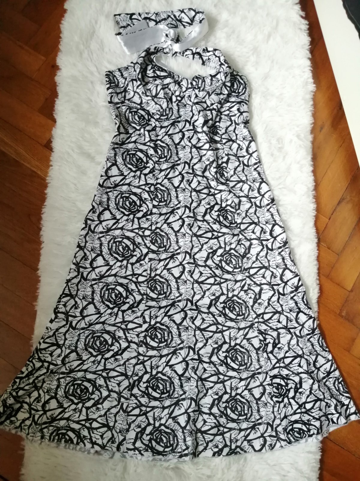 Krásne šaty v top stave, na boku majú zips, štítok s veľkosťou odstrihnutý.