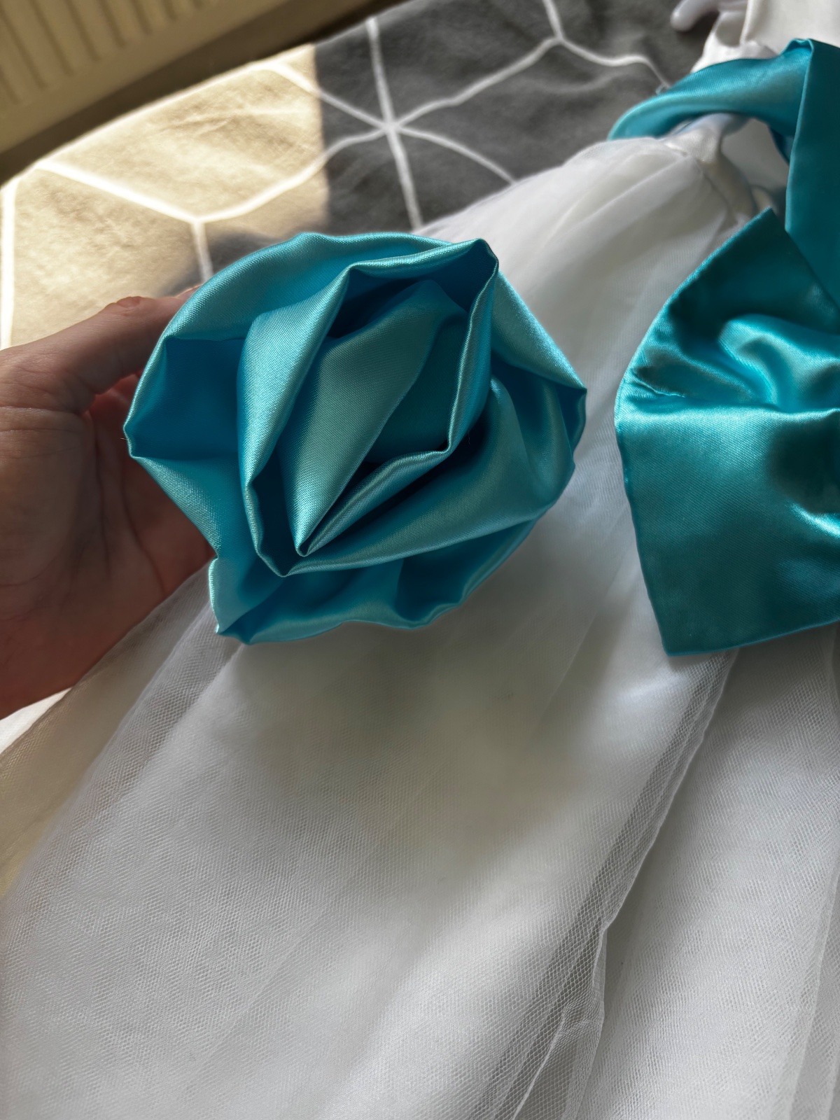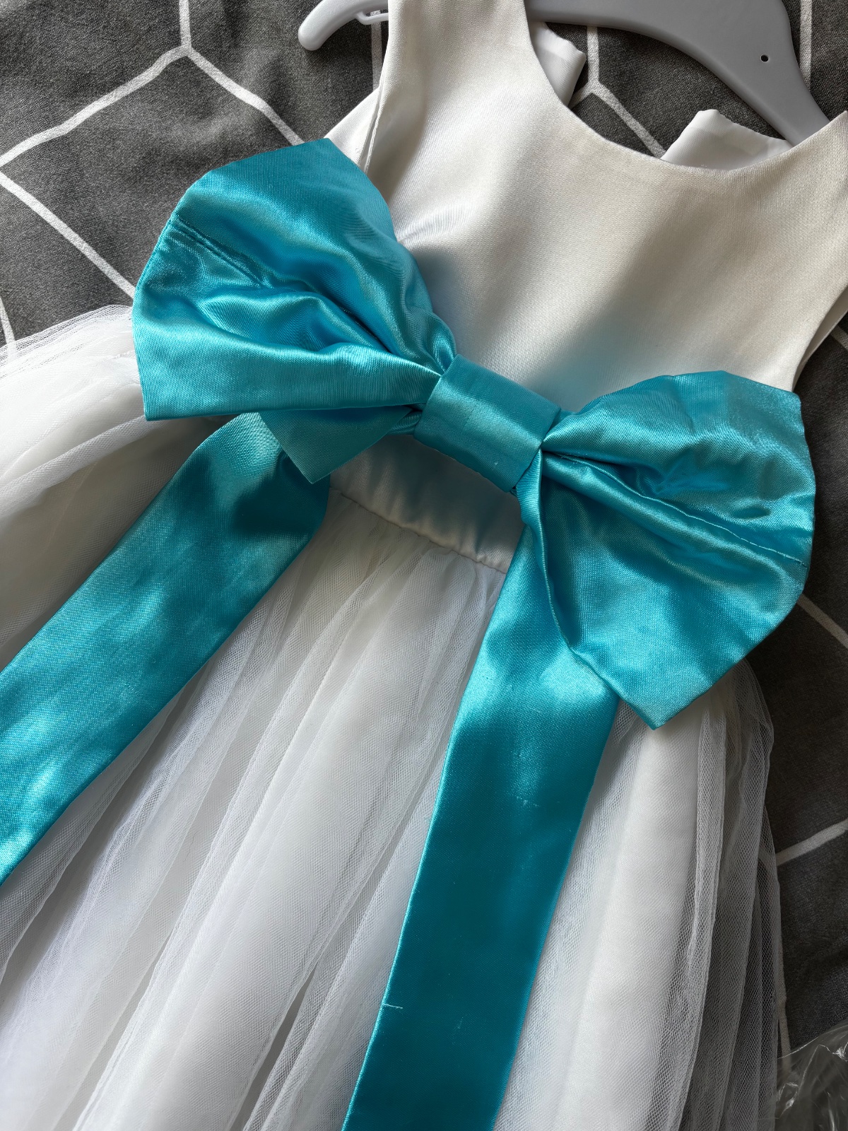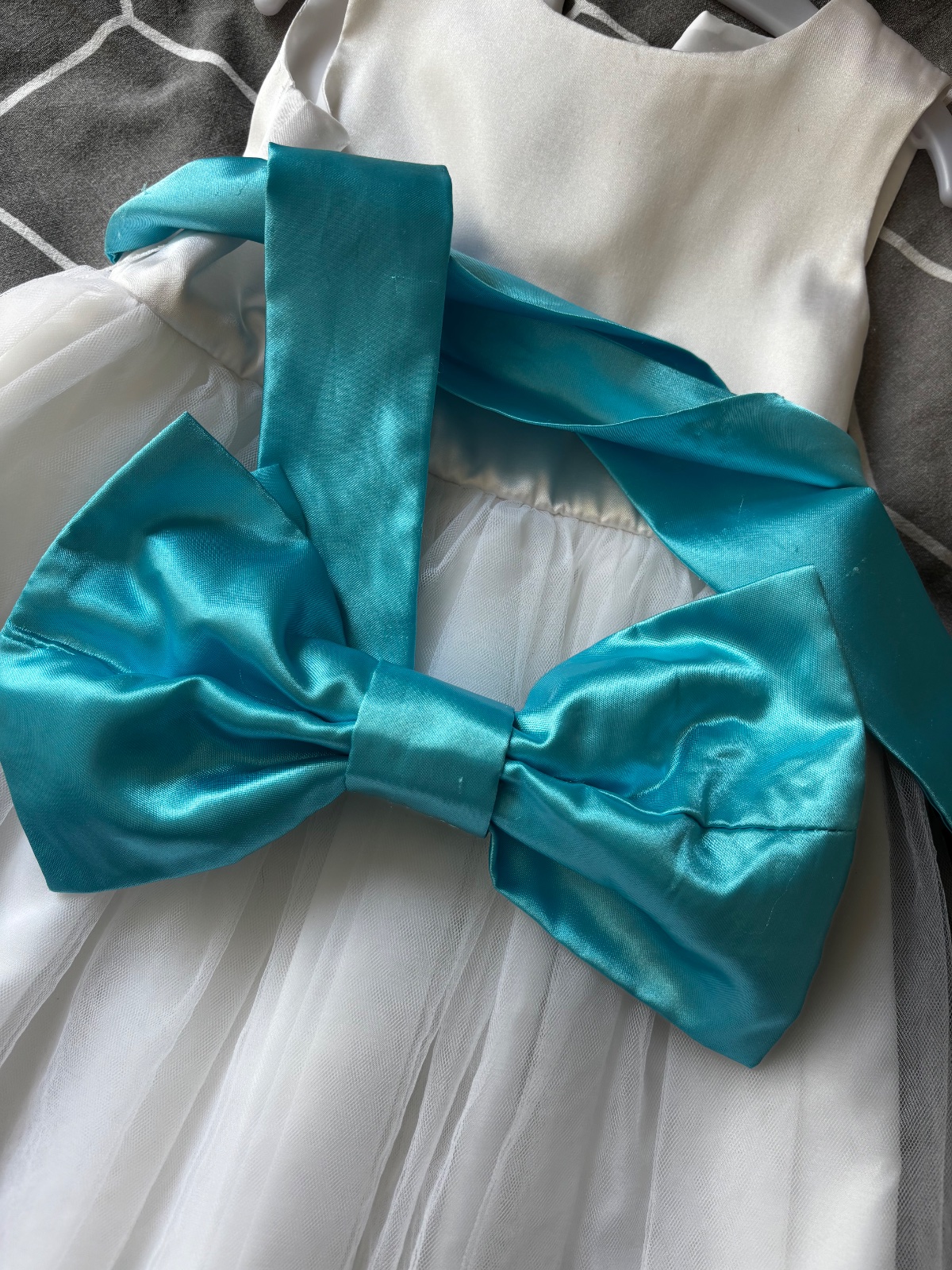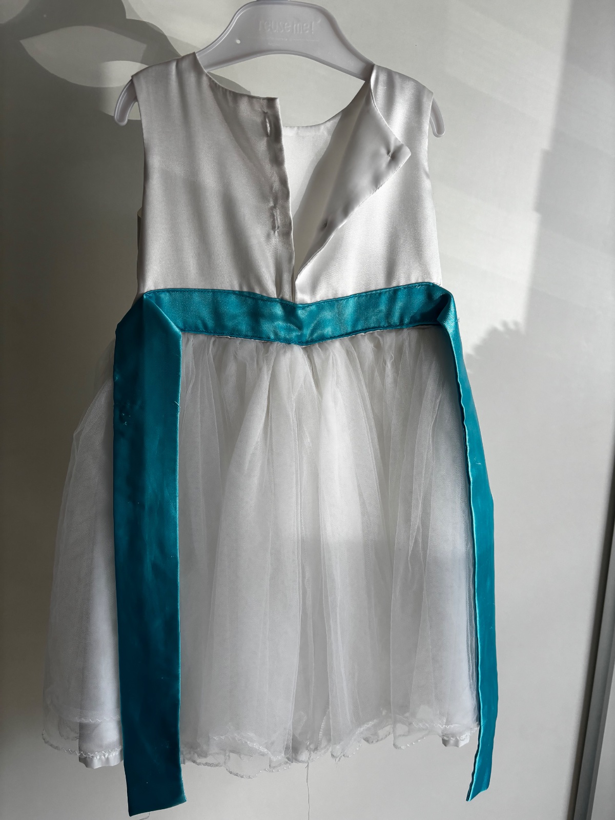 Predám dievčenské spoločenské šaty. Boli 1x oblečené na svadbe a následne boli v čistiarni. K šatám je aj saténová mašľa na suchý zips a taktiež saténová ruža, ktoré môžu byť pripnuté ako doplnok. Cena šiat je 30€ plus poštovné.