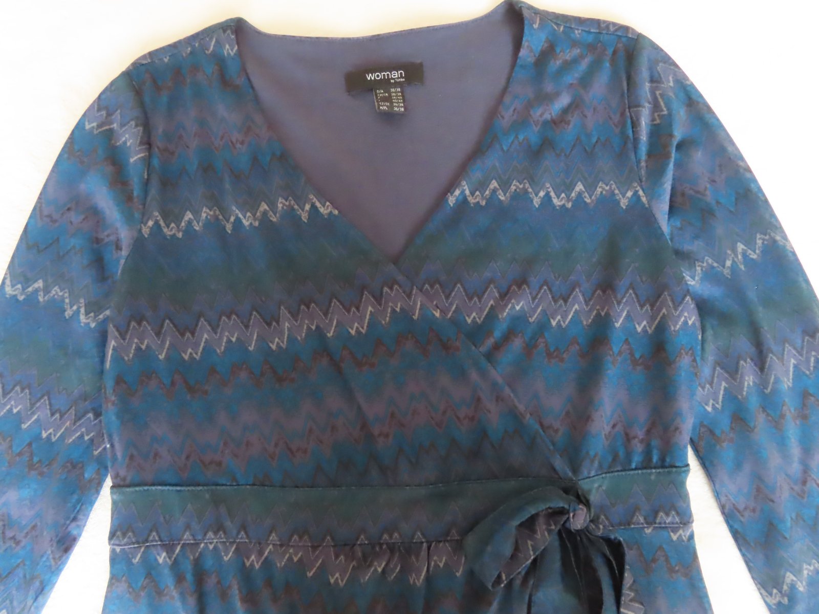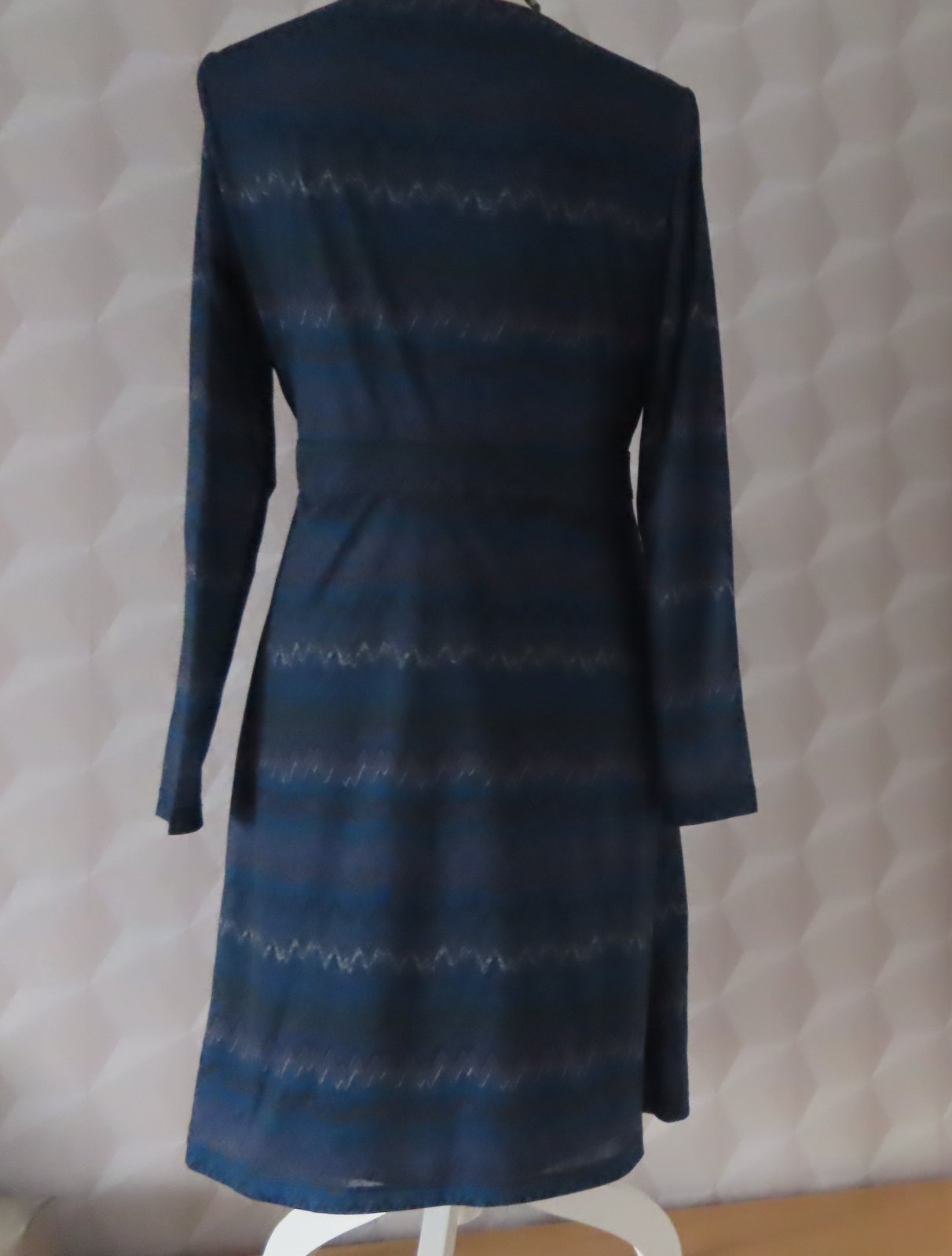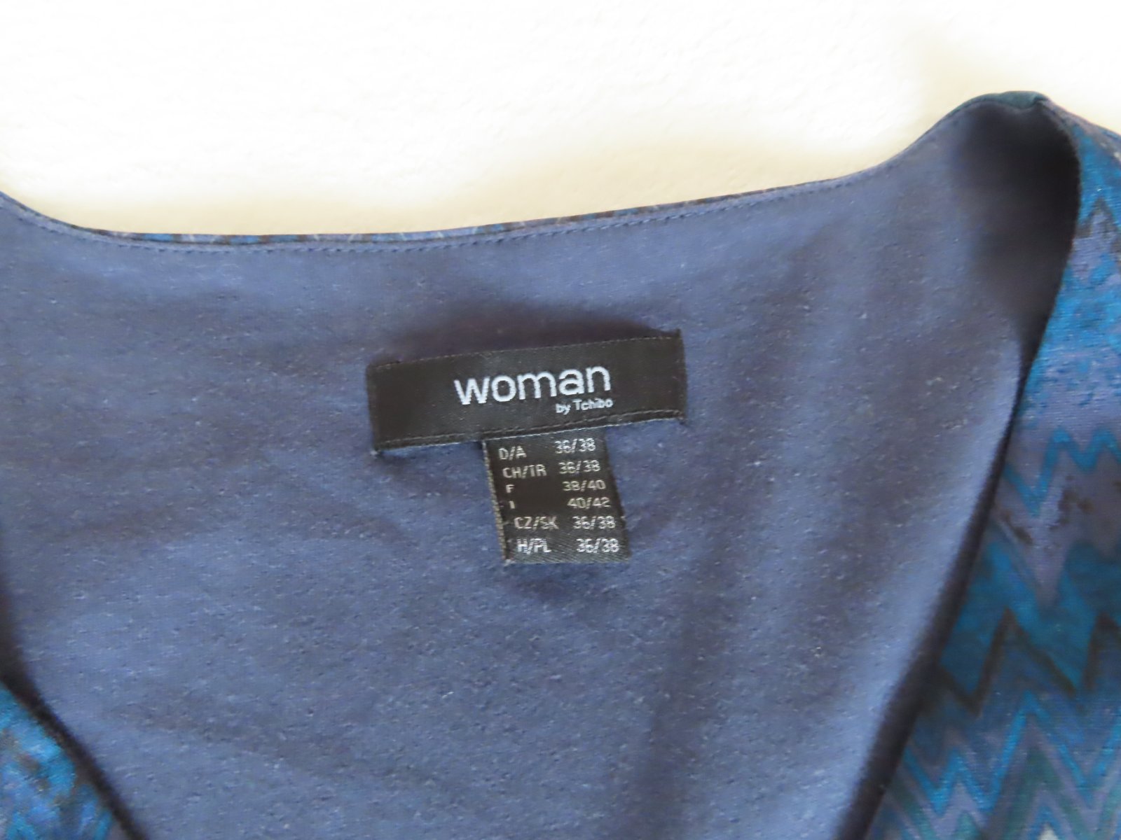 Dámske šaty zn. Tchibo, veľ. 36/38, sedia skôr na 38, rozmery: dlžka 93cm, pod pazuchami 2x49cm, rukáv 59/45cm, pás do 2x41cm.