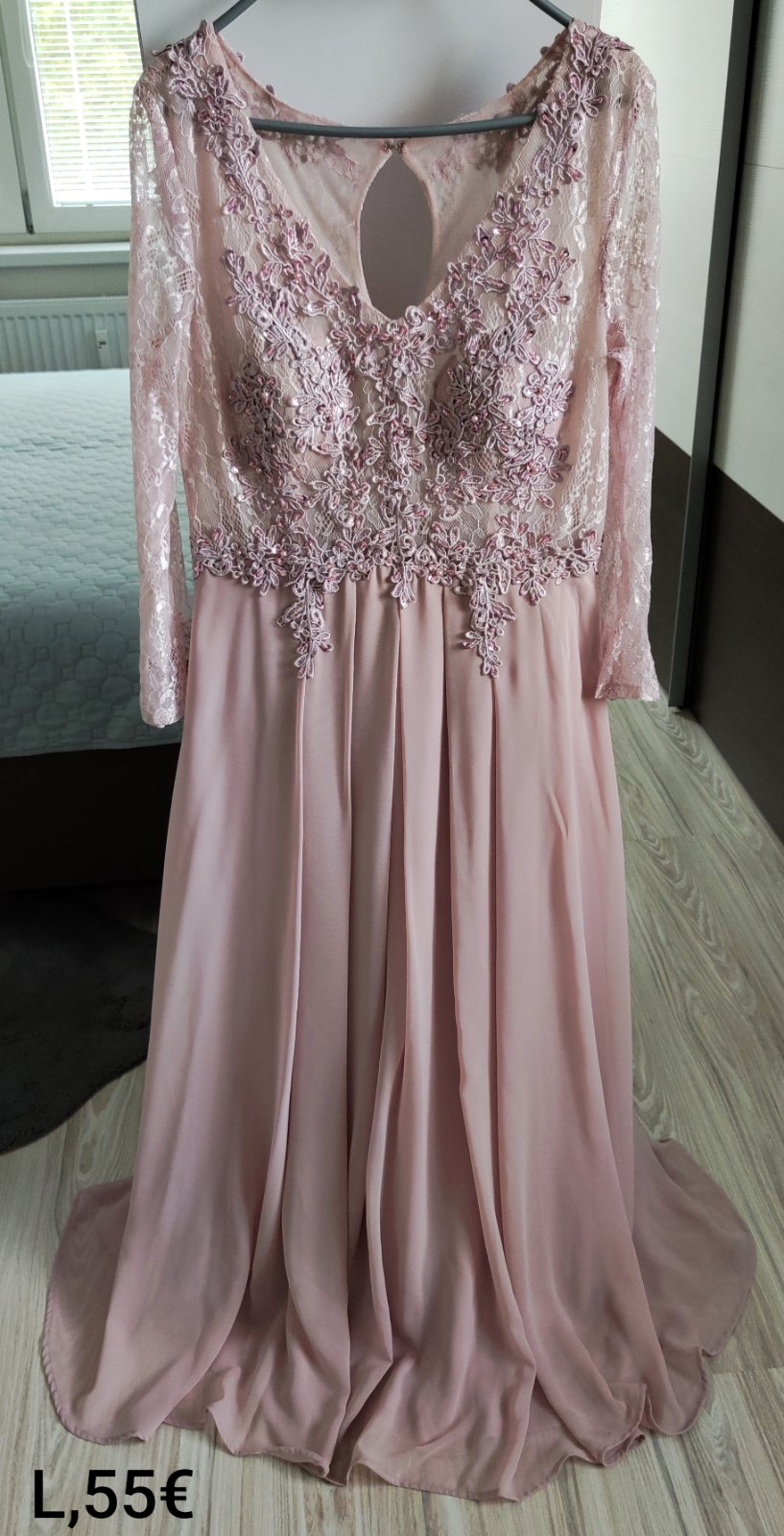 Krásne spoločenské šaty vo veľkosti L, raz oblečené a oprané, cena 55€.