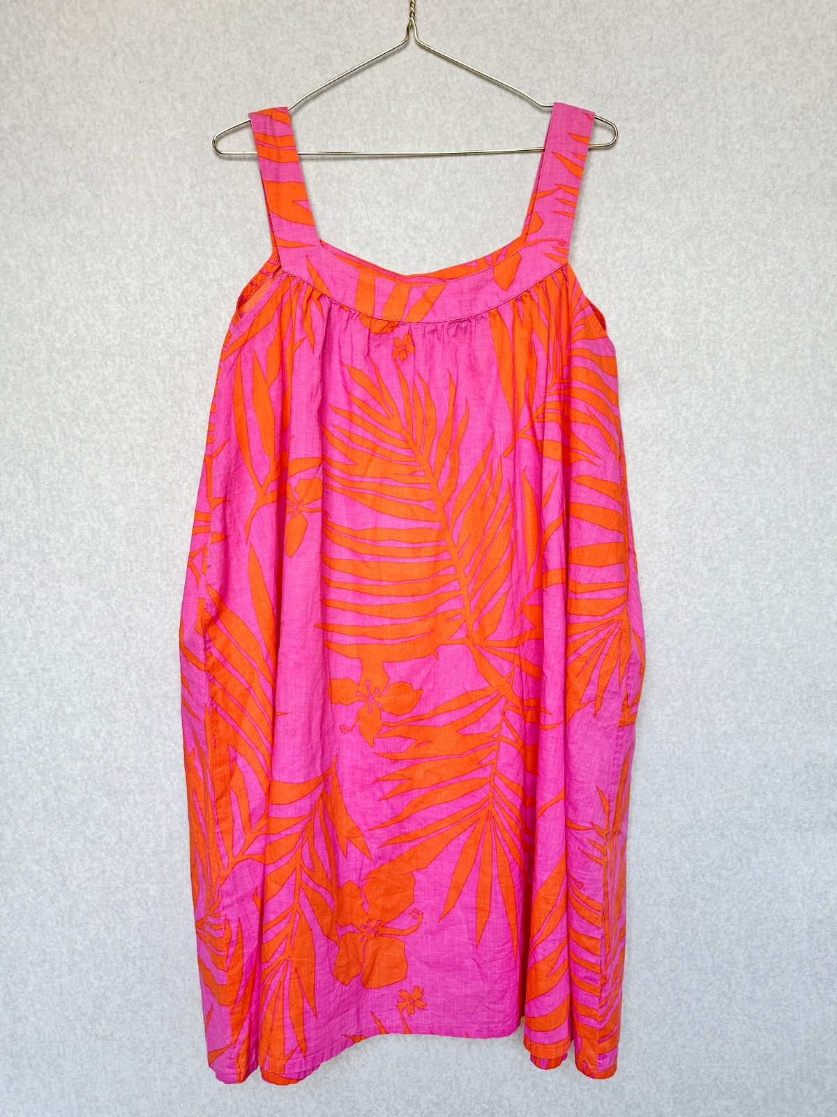 Letné ležérne šaty z kvalitnej ľahkej vzdušnej bavlny, v žiarivých kontrastných farbách ružovej a oranžovej. Krásne ukážu na opálenej pokožke. 100% bavlna, made in India. V super stave, bez poškodení.