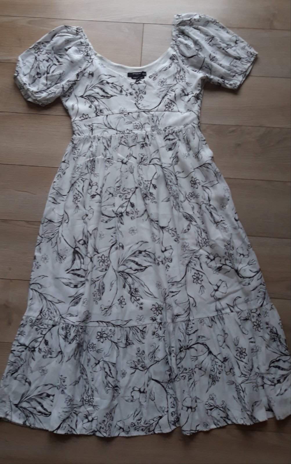 Predám veľmi pekné šaty veľ 38 Pazuchy 44 cm x 2 Dlžka 94 cm Rukáv-vid foto Farba mliečno-biela vzadu krytý zips, opraté, 3 x oblečené, TOP stav, bez chýb
