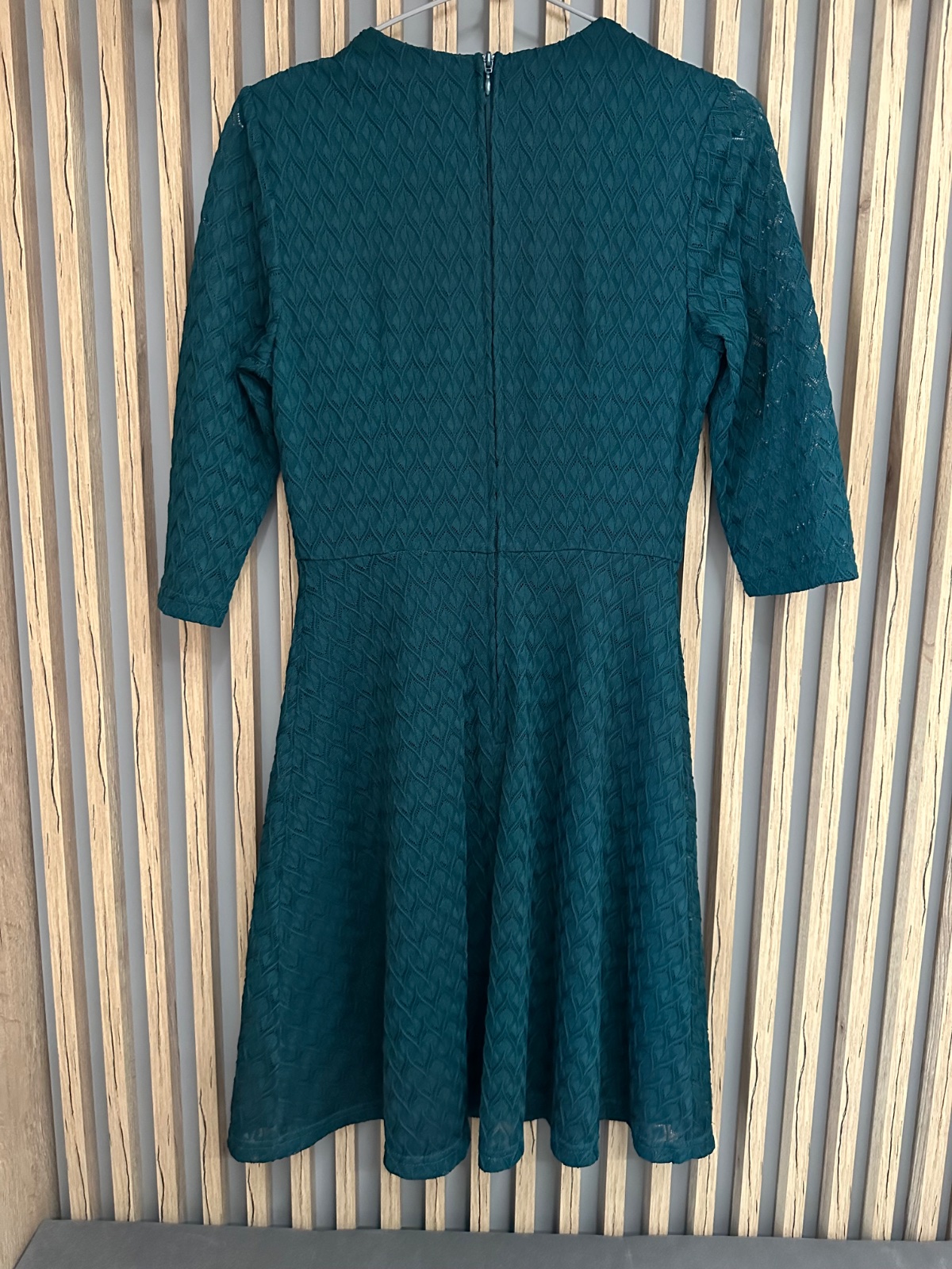 Elegantné pekné šaty vhodné do práce, na bežný deň príp.aj na príležitosť. Vrch je elastický a vyformujeme pekný pás, zvonová sukňa po kolená a 3/4 rukáv pekne ukážu na postave. Naozaj krásne a tak...