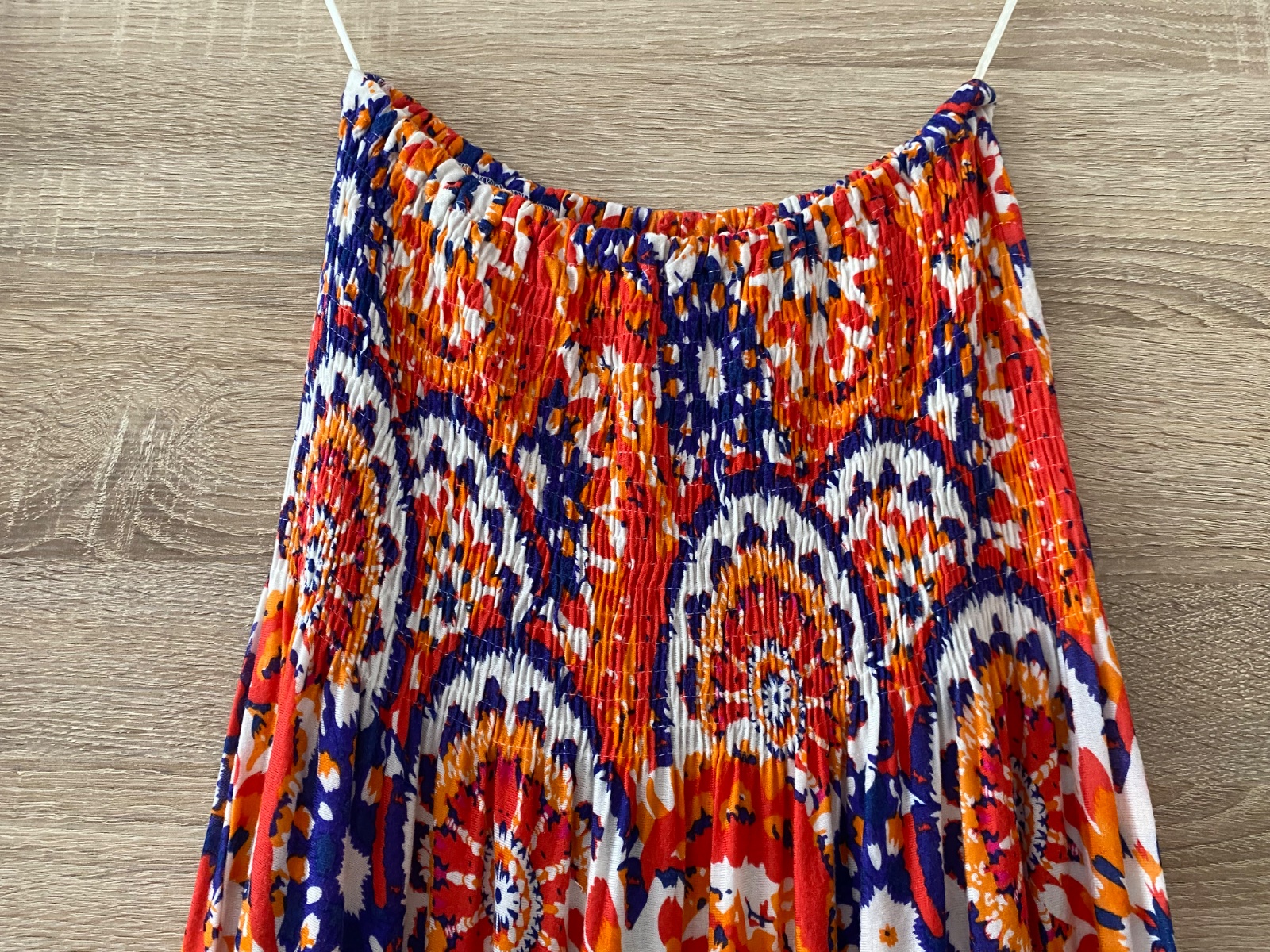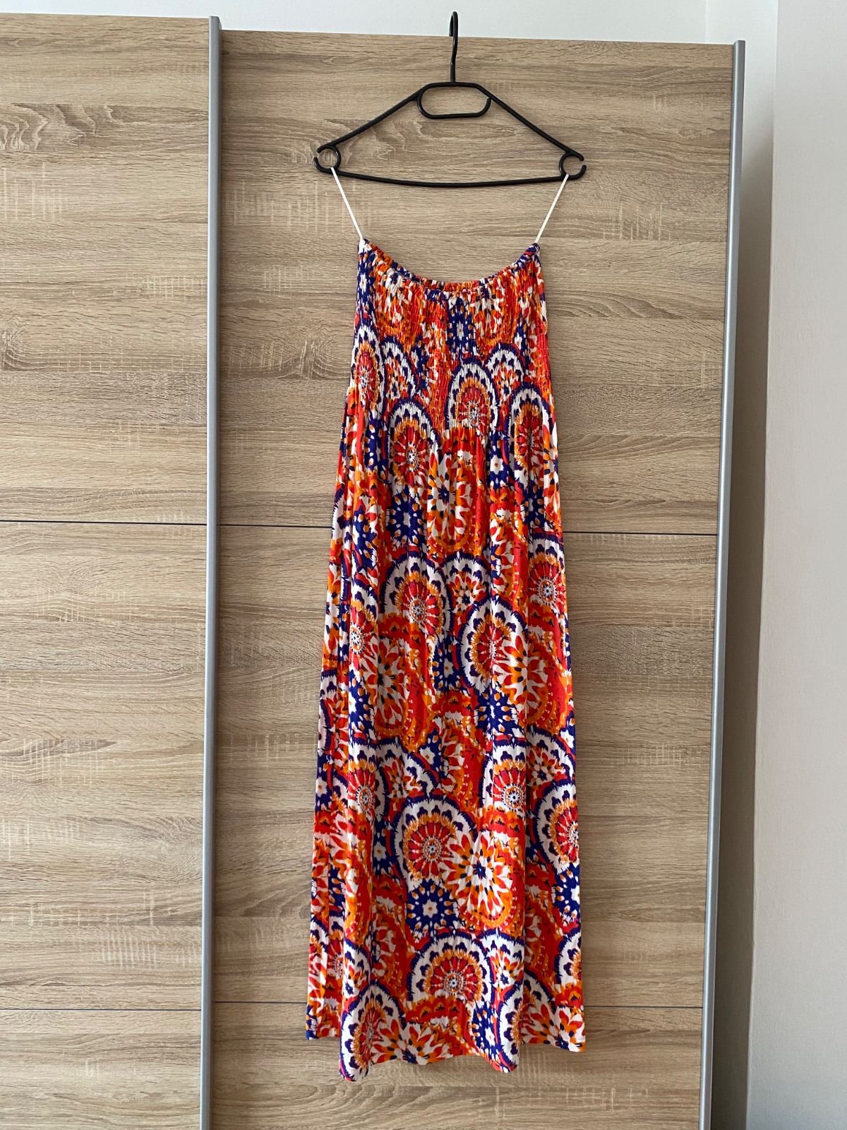 Šaty bez ramienok obvod hrude v kľude 2x32cm, po natiahnutí 2x39cm, dĺžka 118cm