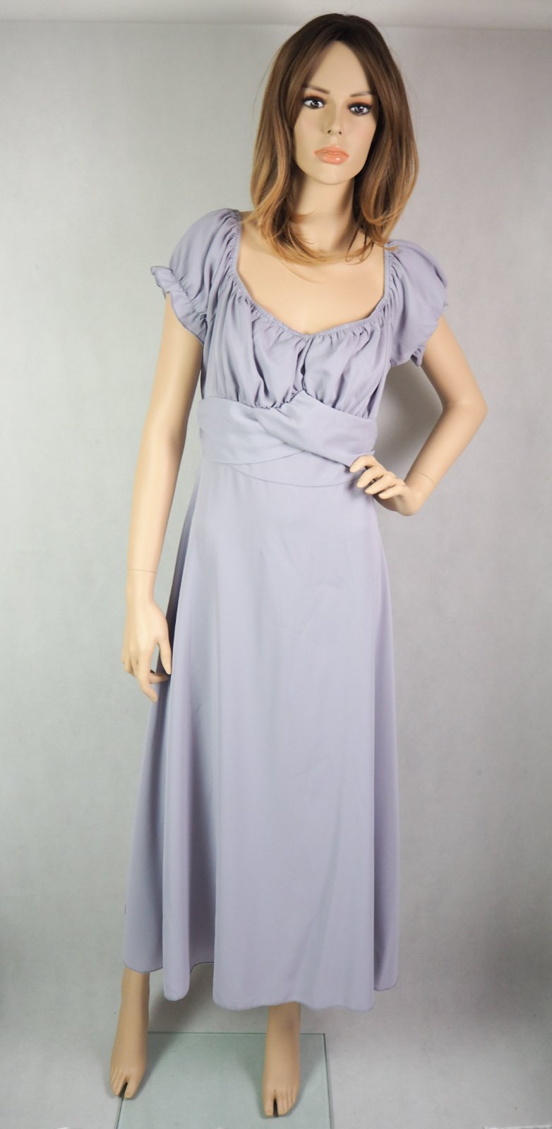 Kvalitné letné šaty bledofialovej farby, vo výstrihu gumka, na boku zips, podšité vzadu zips, materiál 100% polyester, super stav.
