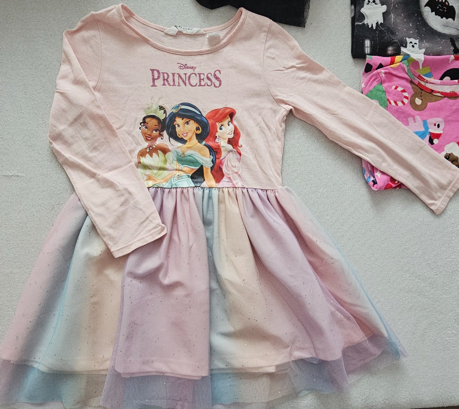 Krásne, bez poškodení, par krat oblečené, velk.110/116, tylová suknička je trblietavá. + poštovné