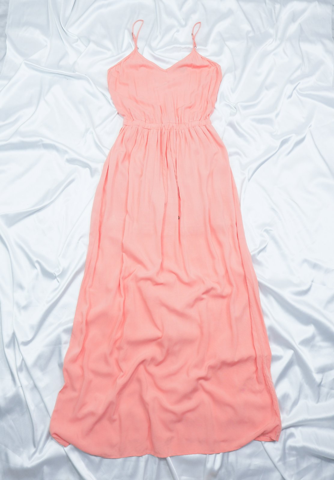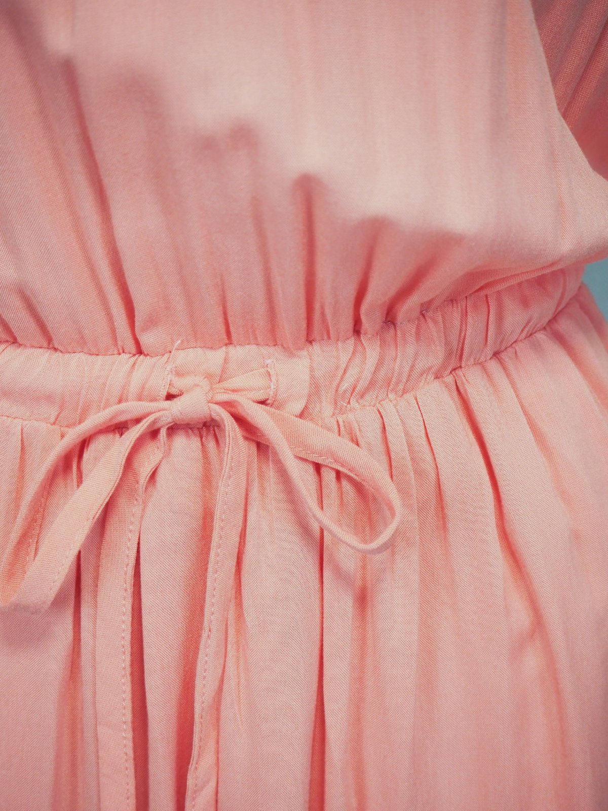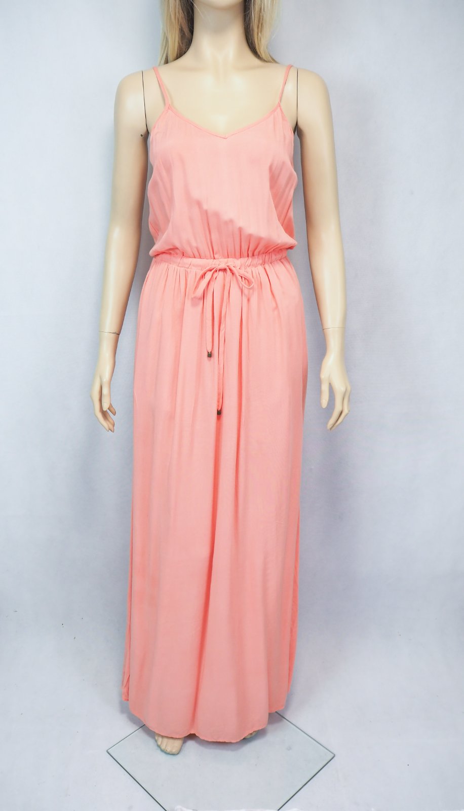 Kvalitné letné šaty bledomarhuľovej farby, v páse gumka a šnúrka, materiál 100% viskóza, podšívka 100% polyester, sú podšité po stehná, super stav, ako nové.