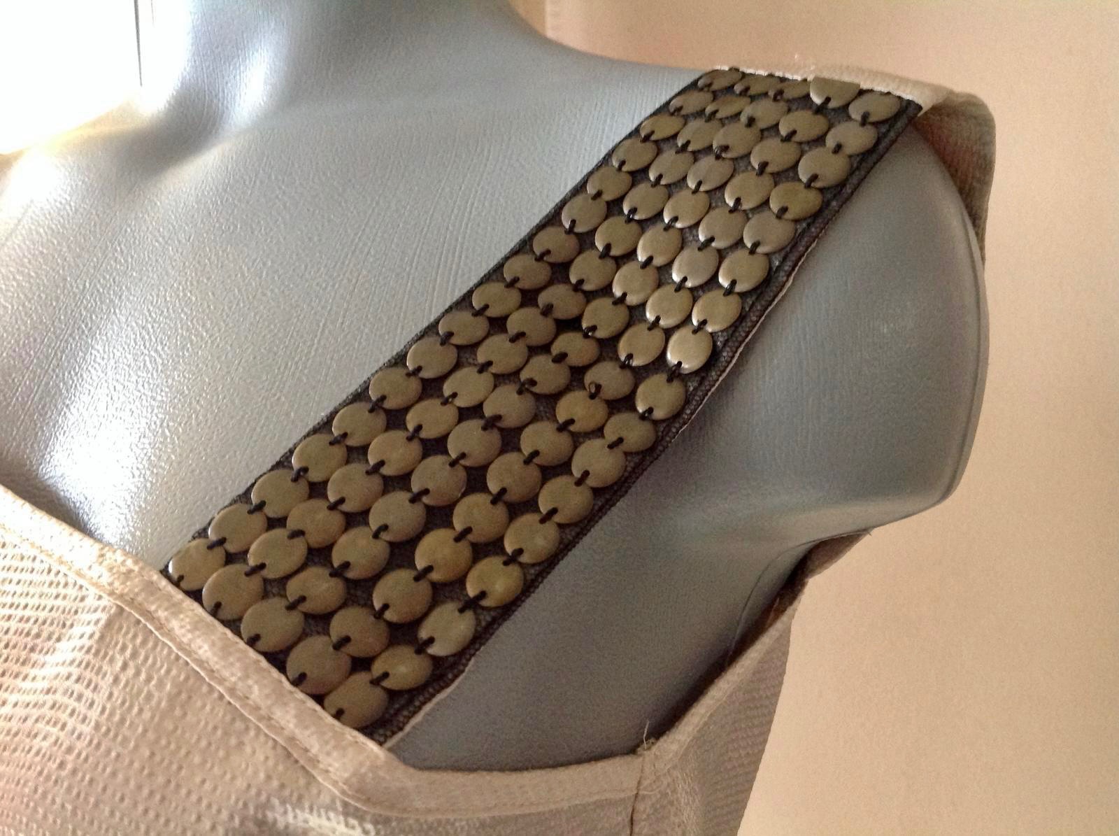 Kraasne padavy materialik mierne leskly...v pase do gumy a s opaskom...jedno plece krásne na ramienko zdobené plieškami...velkosť je uvedena 14 ale zdaju sa mi menšie,su uplne jemnucke z polyestreru
