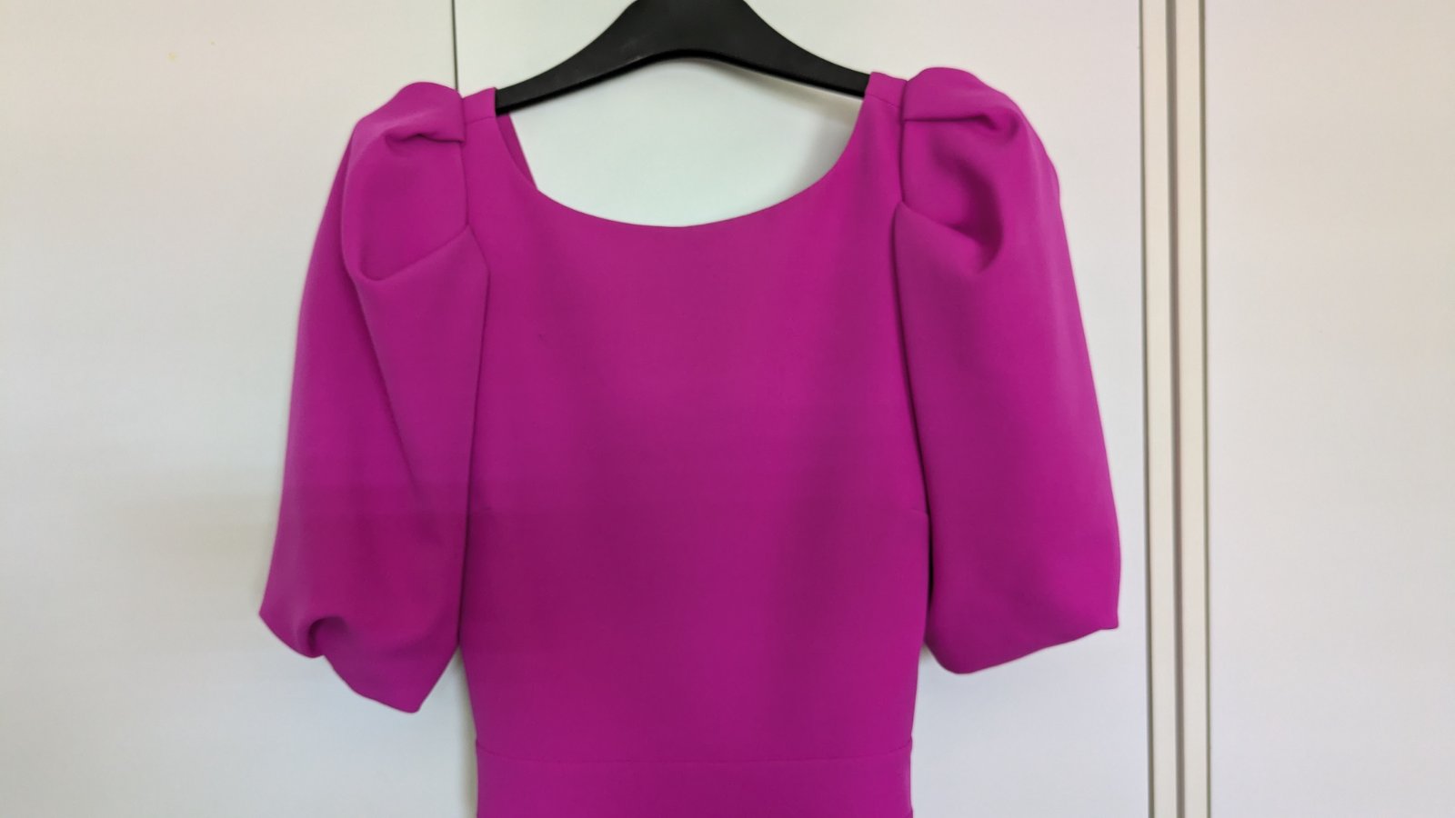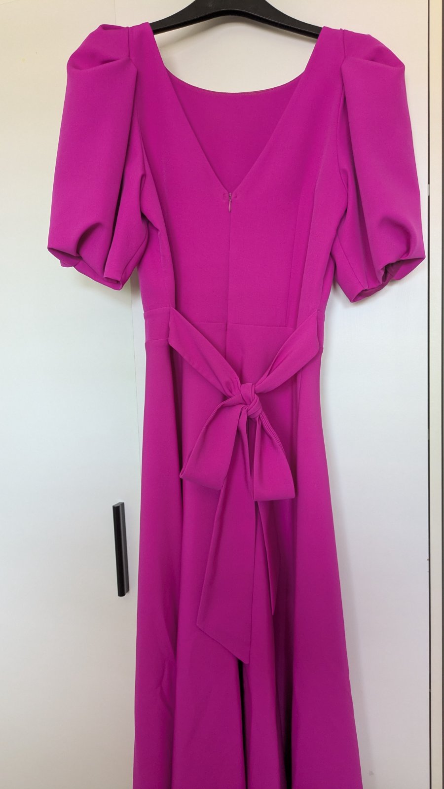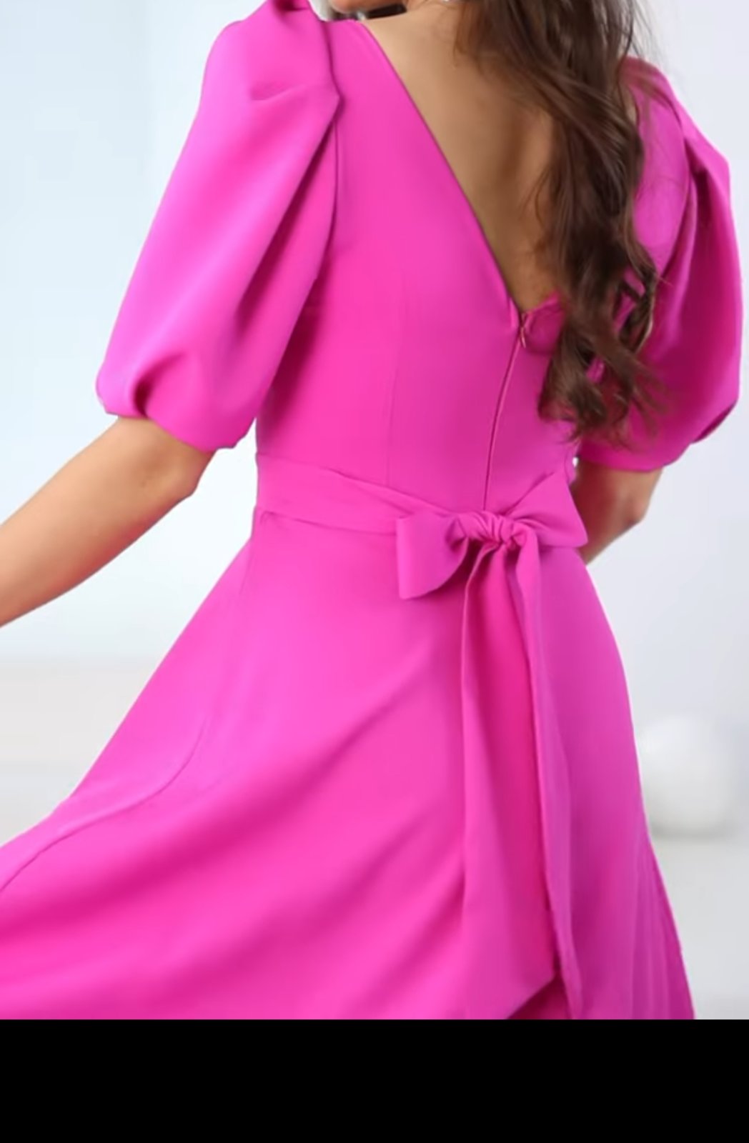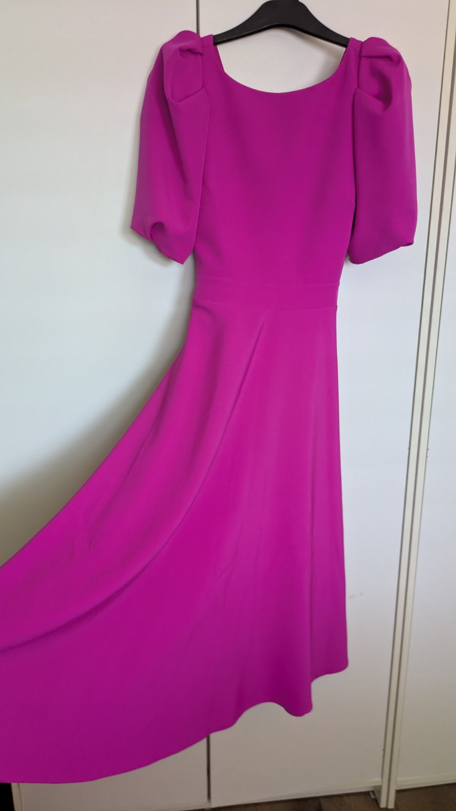 Posuniem spoločenské midi šaty s nafuknutymi rukávmi, v zadnej časti na zips a viazanie mašľou. Veľkosť písaná 36, ja nosím 34 - mašľou sa dajú šaty krásne dopasovať , takže veľkostne pekne sedia na postavu 34-36. Osobné mám 160cm, šaty sú midi; takisto pekne ukážu aj na vyššej postave. Oblečené boli dvakrát zhruba na 2 hodiny, takže ako nové. PC 95€ , pri vážnom záujme možná mala dohoda na cene.