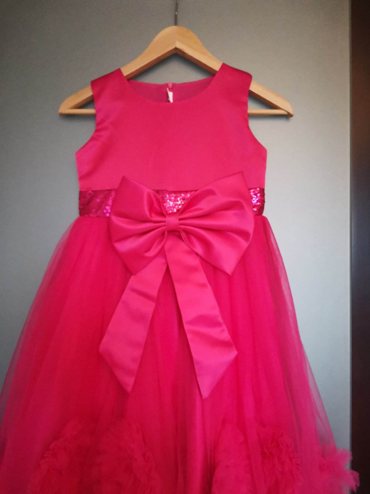 Nádherné šaty, ale dcéra už nechcela ružové, nepoužité.