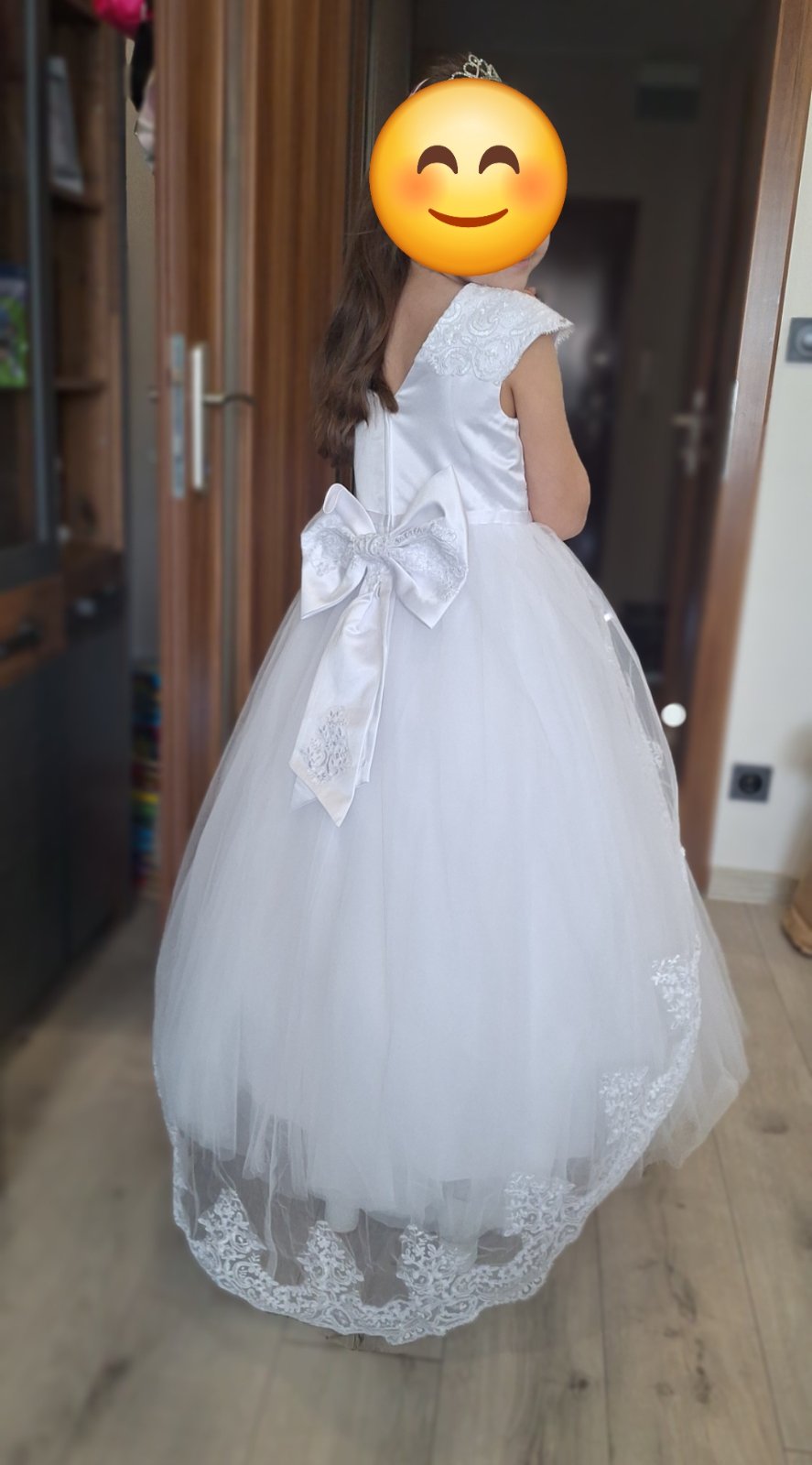 Ponukam pekne saty na 1.svate prijimanie plus kruh masla sa da odopnut miery su cca hrudnik 70cm, pas 63cm, boky 72cm.