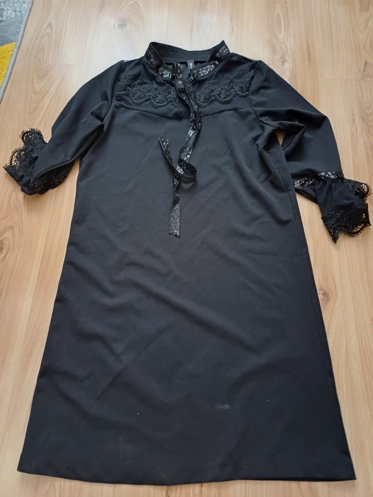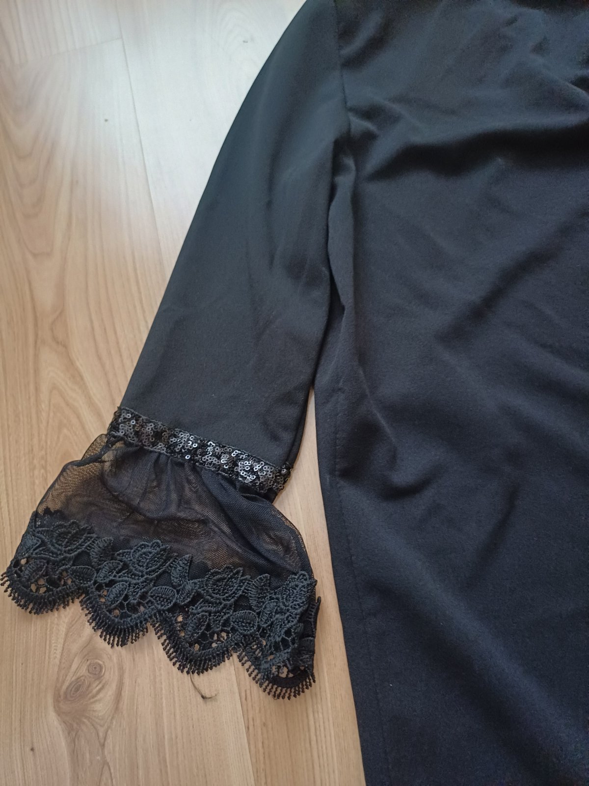 predám čipkované šaty, mierne priesvitné, veľmi jemné, čipka je príjemná mäkká, nie tvrdá, ako to zvykne byť. Rozmery: celková dĺžka 89cm, rukáv od pazuchy 26cm, rukáv od ramena 38cm, obvod hrude...