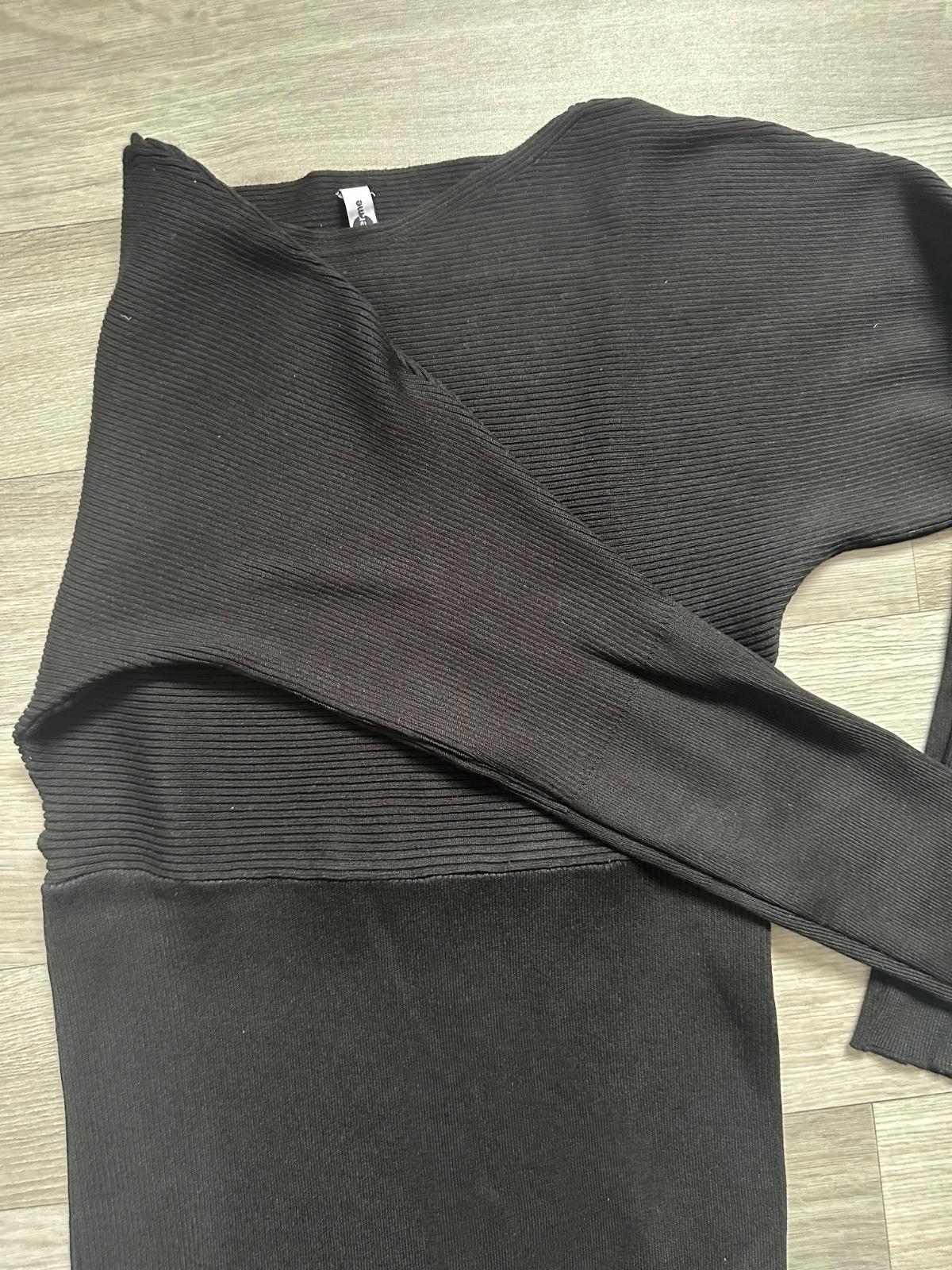 Ponúkam na predaj čierne šaty, úzka sukna, vrch netopierie rukavy, veľ. S, je to vacsie.