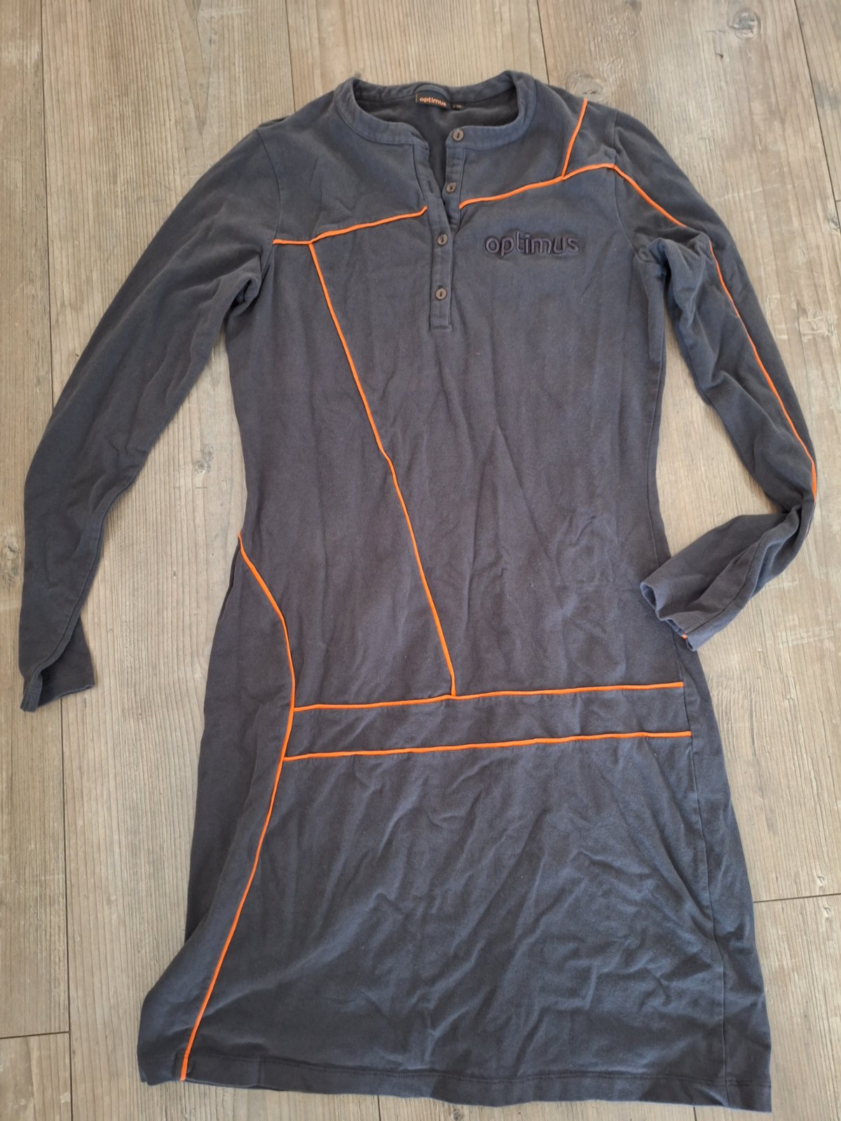 Velmi kvalitné bavlnené šaty. Seda farba ozivena výrazným oranžovým lemom. Su veľmi pohodlné a elastické