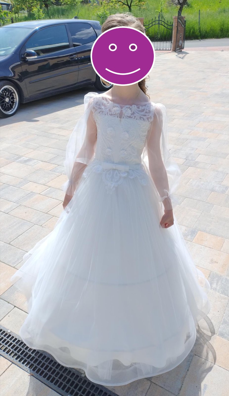 Luxusné šaty na 1.sv. prijímanie. Pôvodná cena 125 Eur. Kupované v Poľsku. Použité raz. Iba osobný odber- možnosť si tak vyskúšať. Bez vady. Veľkosť som uviedla iba preto, že sa musí, ale oficiálne na nich veľkosť nie je.