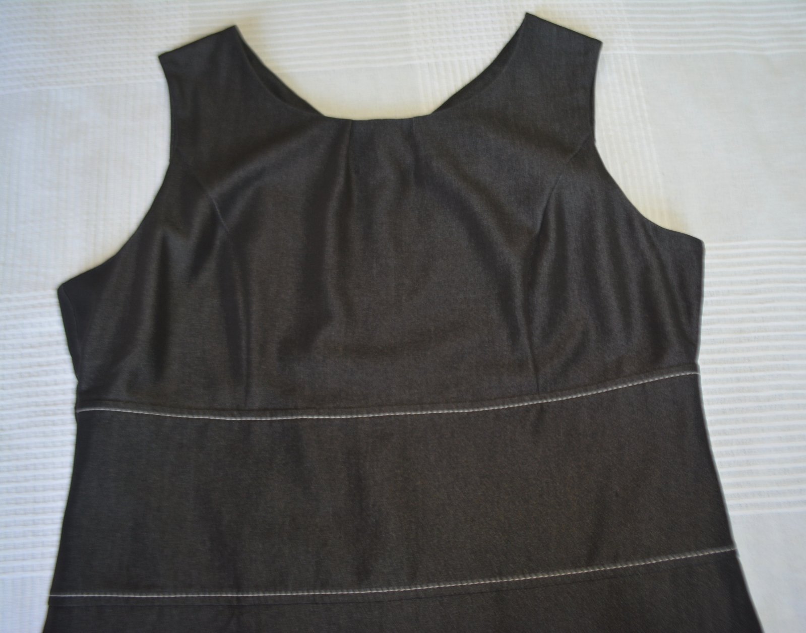 Šaty sú tmavošedé s jemným striebristým odleskom, v oblasti pása štepované - prispôsobia sa postave. Sú podšité, zapínanie vzadu na dlhý zips.