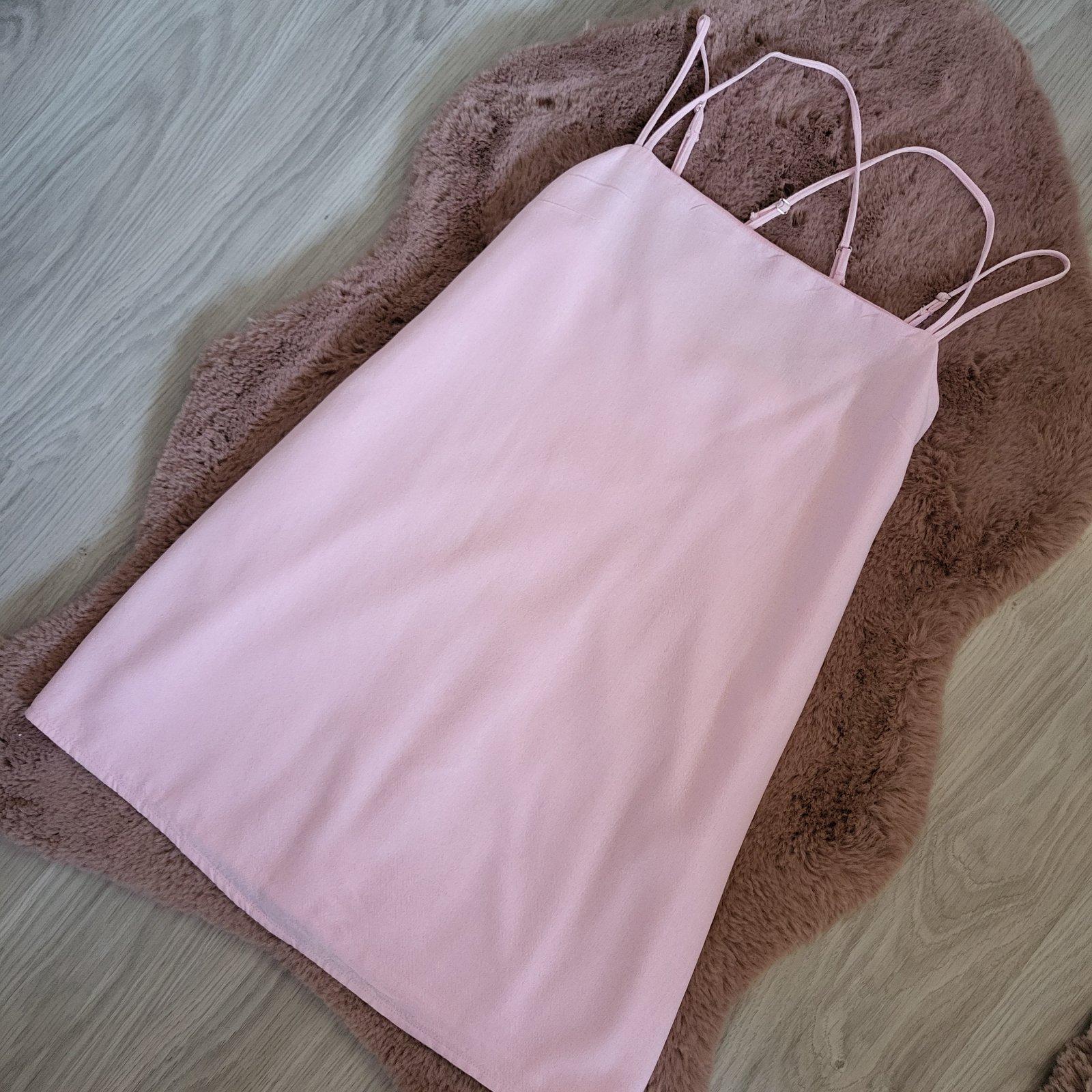 Top stav. Minisaty, krásne farba, volný strih. Materiál vyzerá ako lan. Saty su podsite. Vzadu zips, dvojité ramienka. Len oprate a bez visacky.